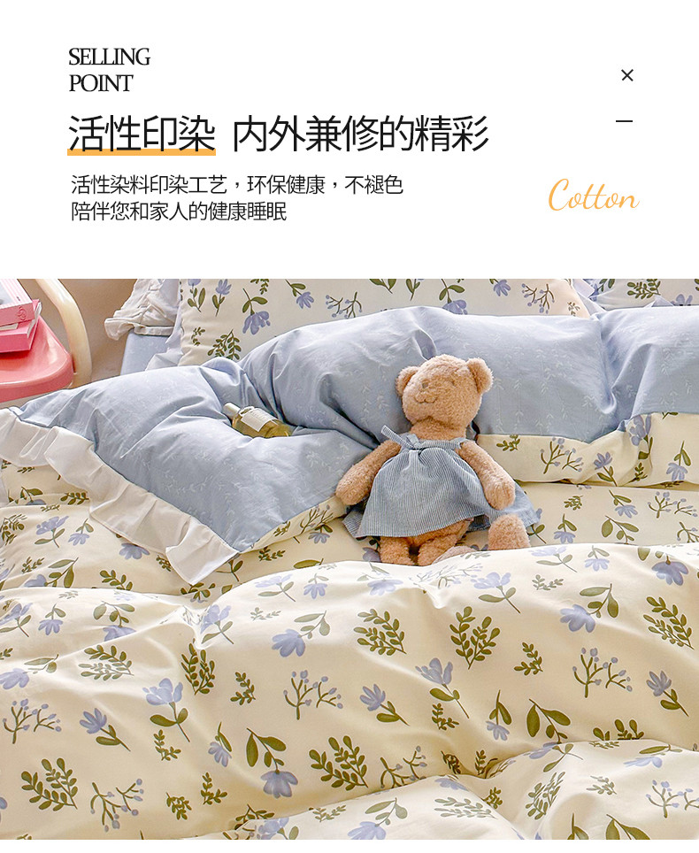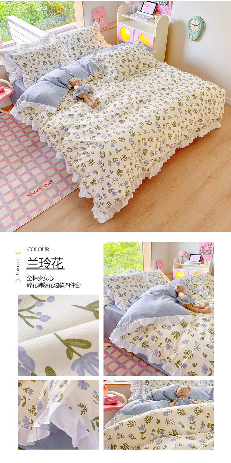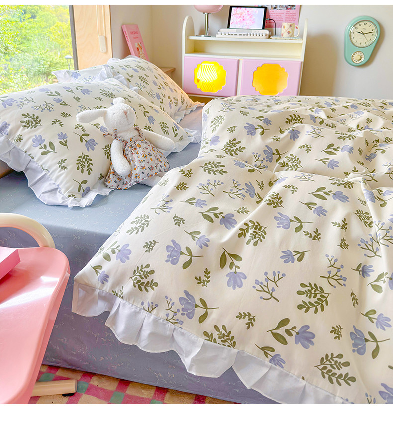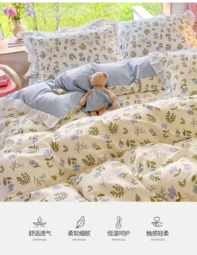 商品名称:桃子 2023新款仙气奶油碎花少女心韩版花边纯棉四件套 花边-兰玲花