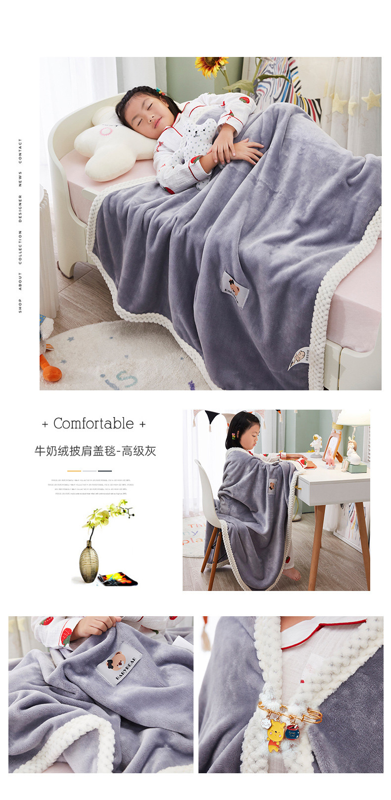 商品名称:肖恩毯业 2025新款双面牛奶绒儿童披肩毯办公室午睡毛毯 高级灰
