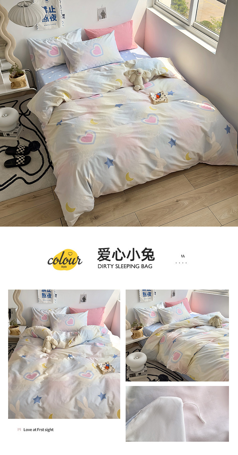 怡家居 2023新款全棉小清新印花四件套 爱心小兔