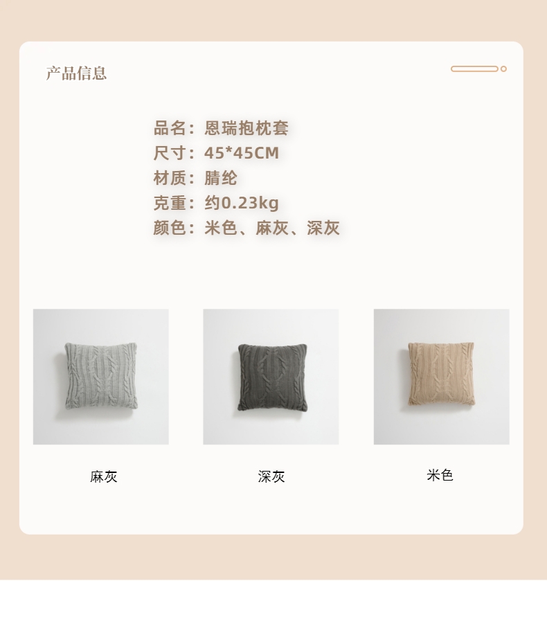 商品名称:(总)暖绵绵 2025新款恩瑞抱枕套靠枕靠垫方枕方垫午睡靠枕套