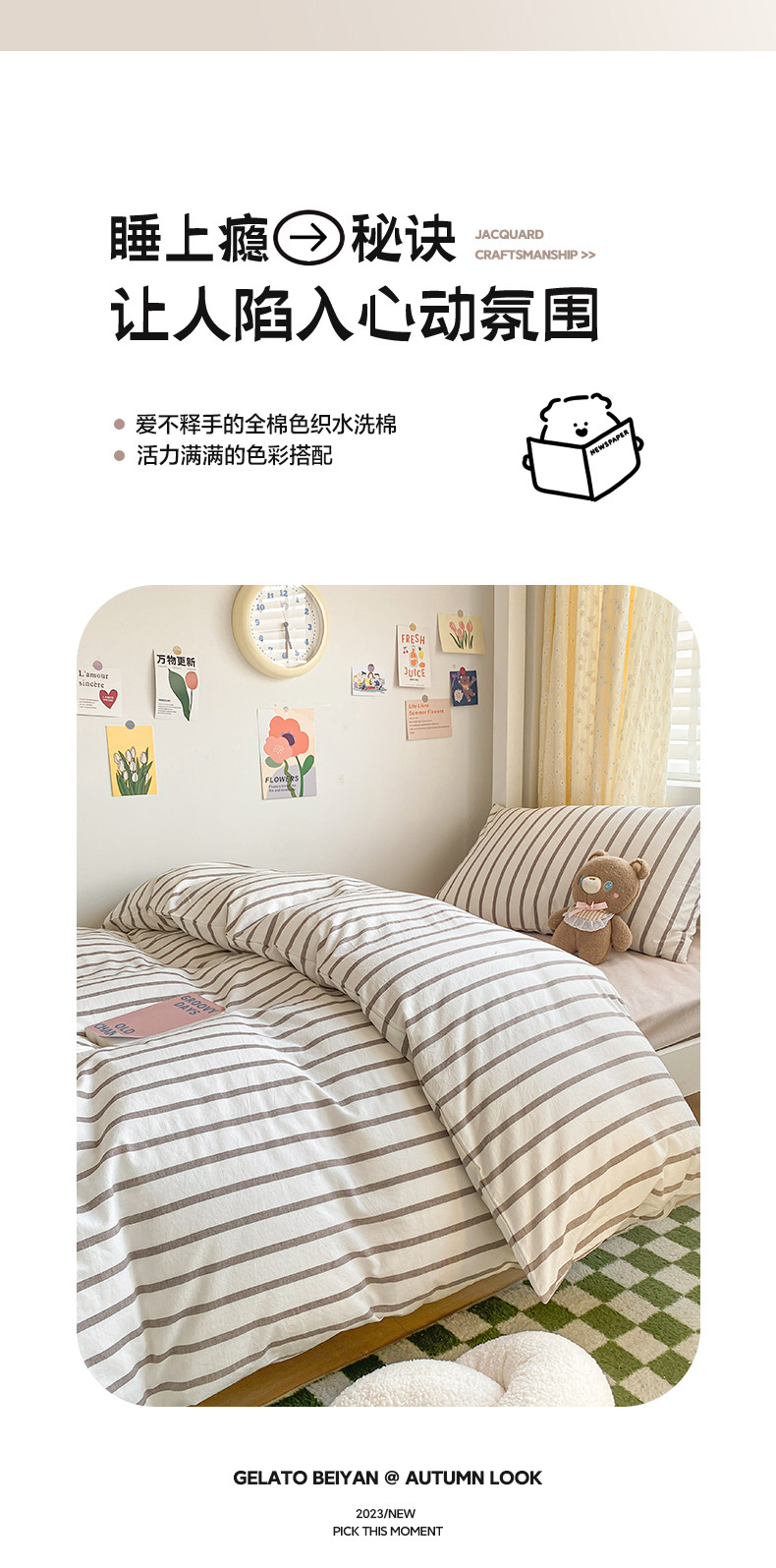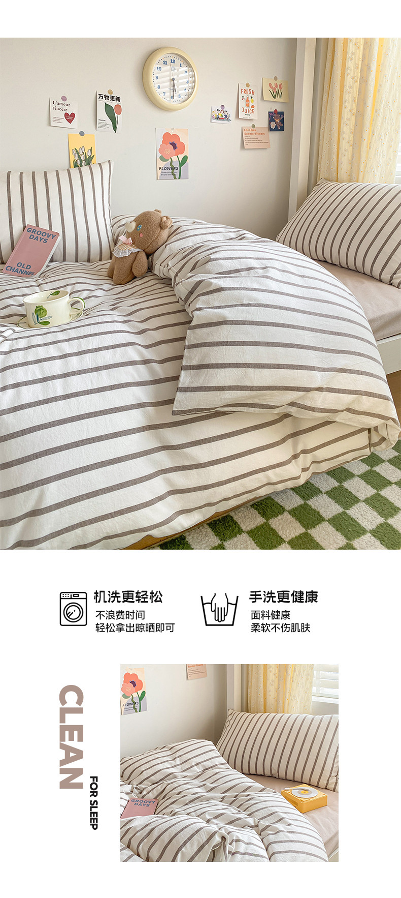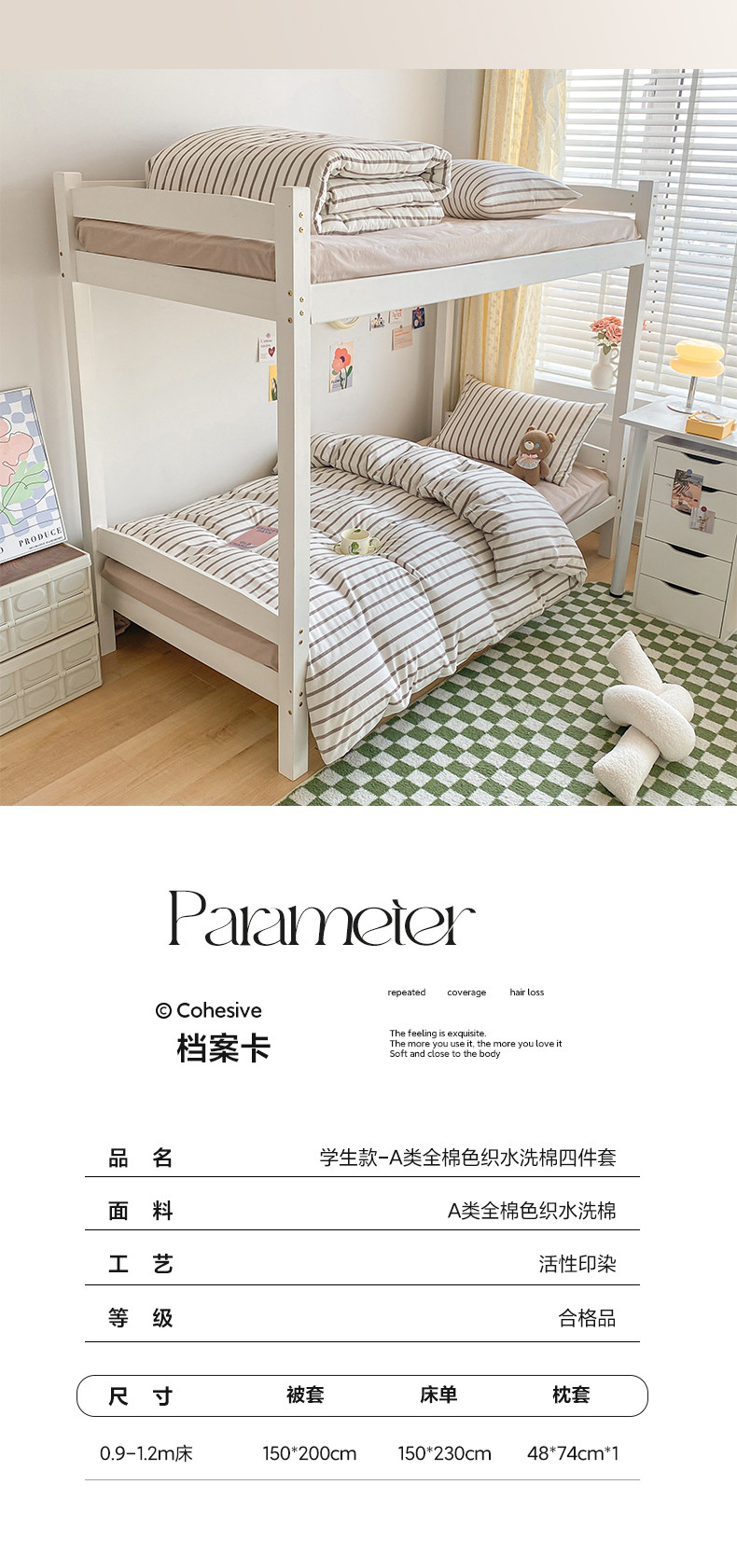 莱茵家居 2024新款色织全棉水洗棉学生床三件套 栗小棕