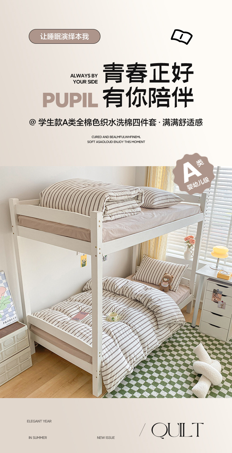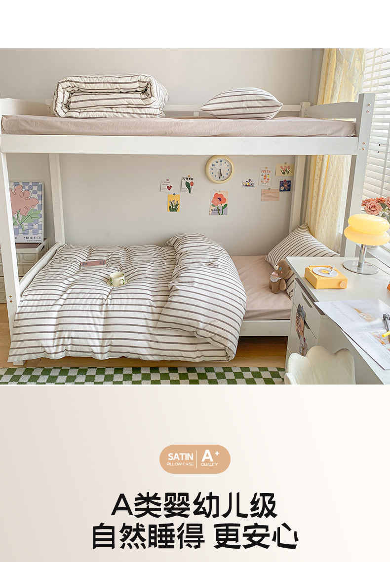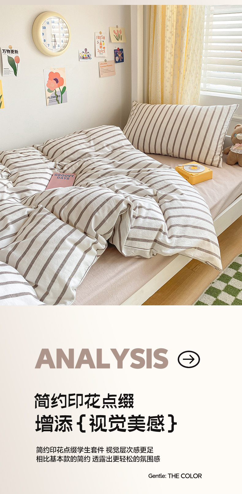 莱茵家居 2024新款色织全棉水洗棉学生床三件套 栗小棕