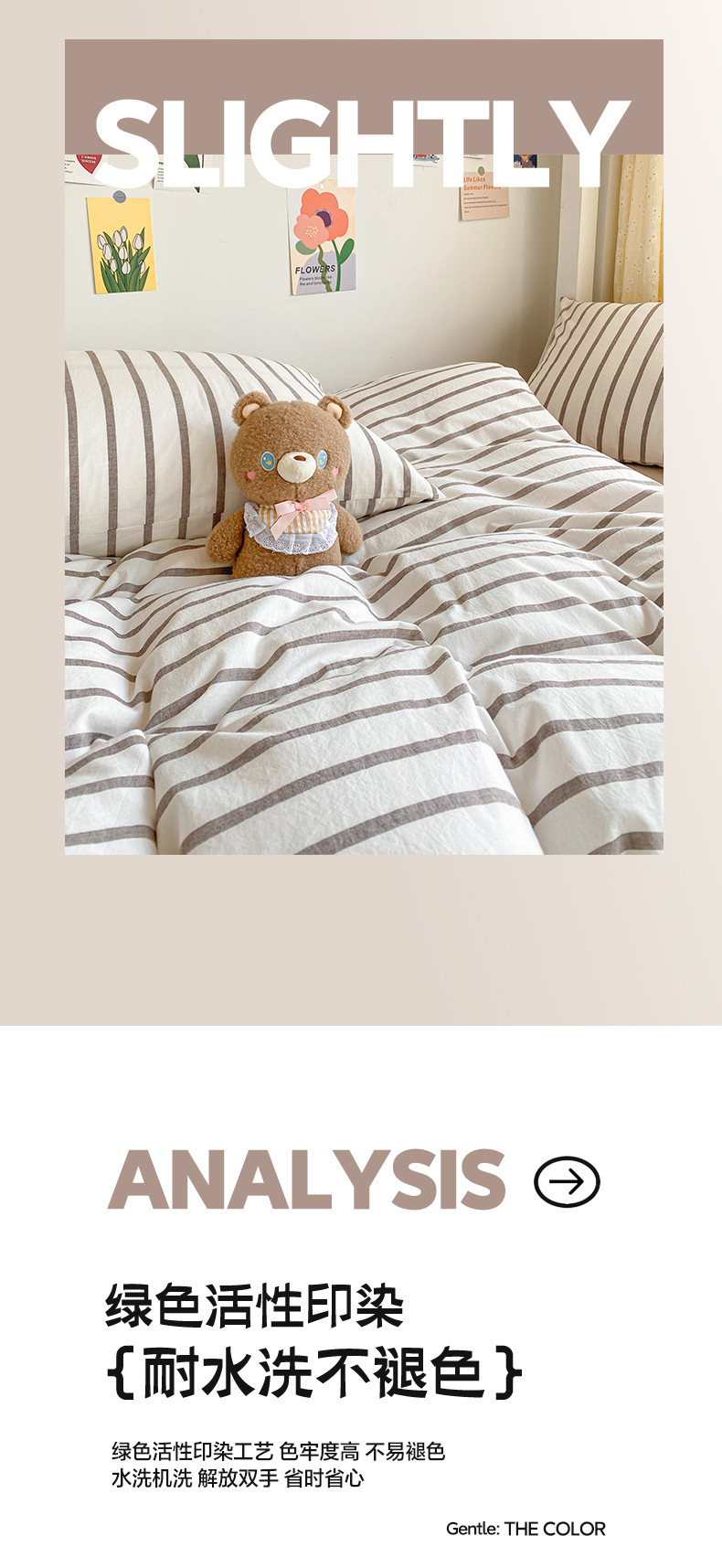 商品名称:莱茵家居 2024新款色织全棉水洗棉学生床三件套 栗小棕