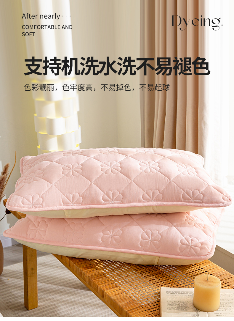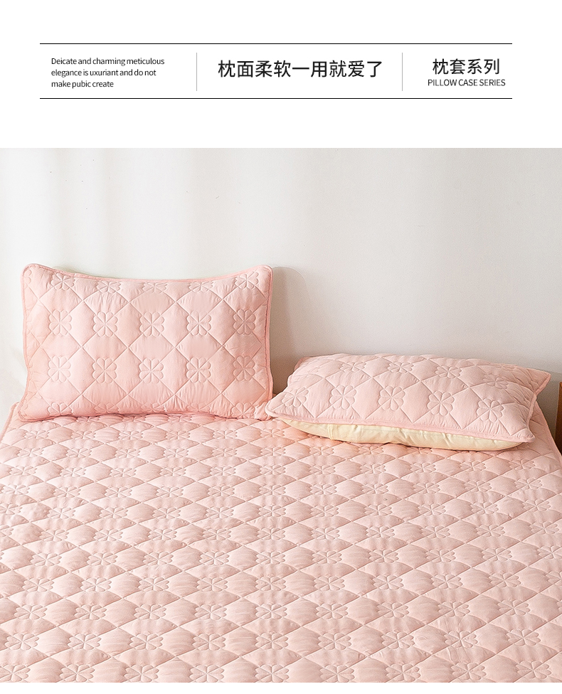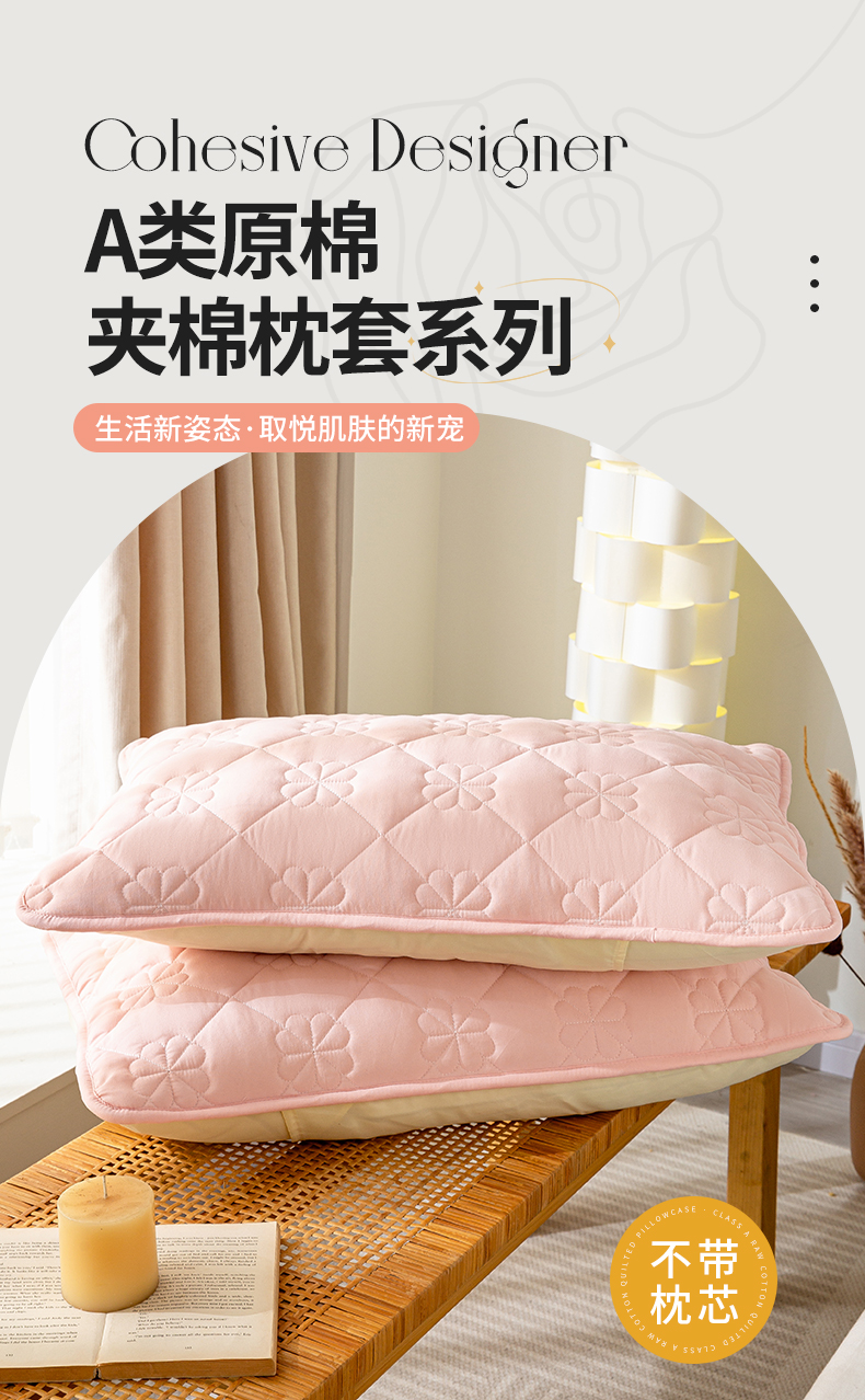 恬澳家纺 2024新款A类夹棉原棉风枕套 四叶草-粉玉