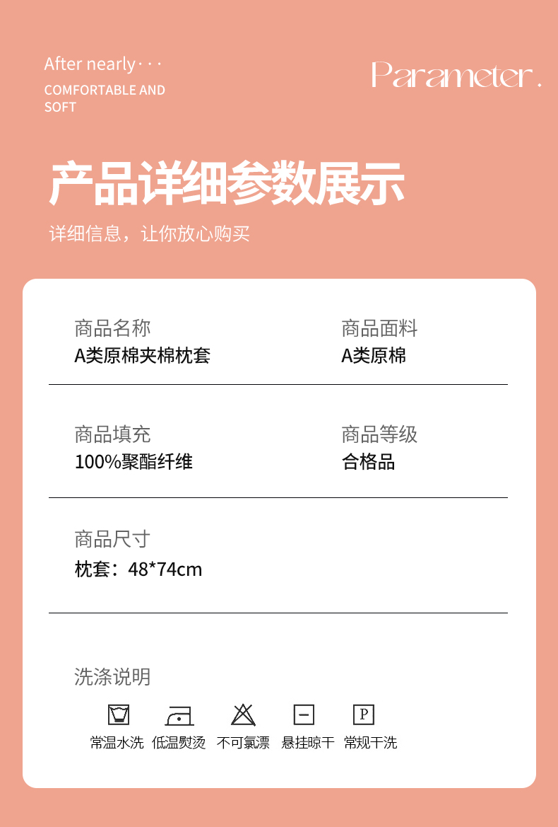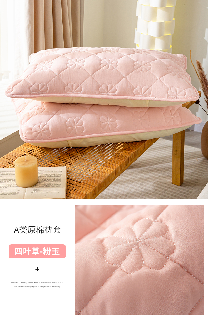 商品名称:恬澳家纺 2024新款A类夹棉原棉风枕套 四叶草-粉玉