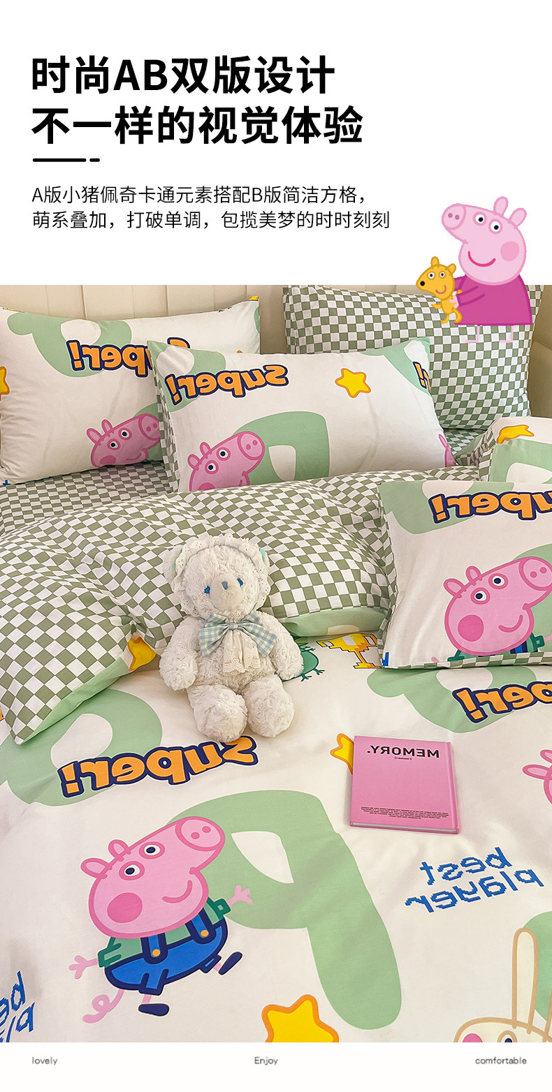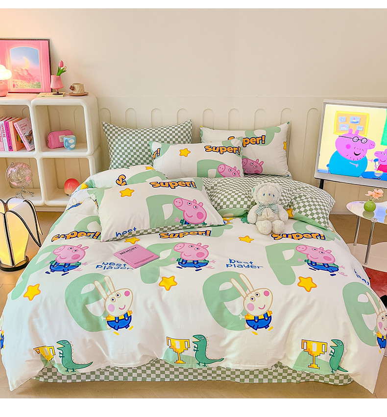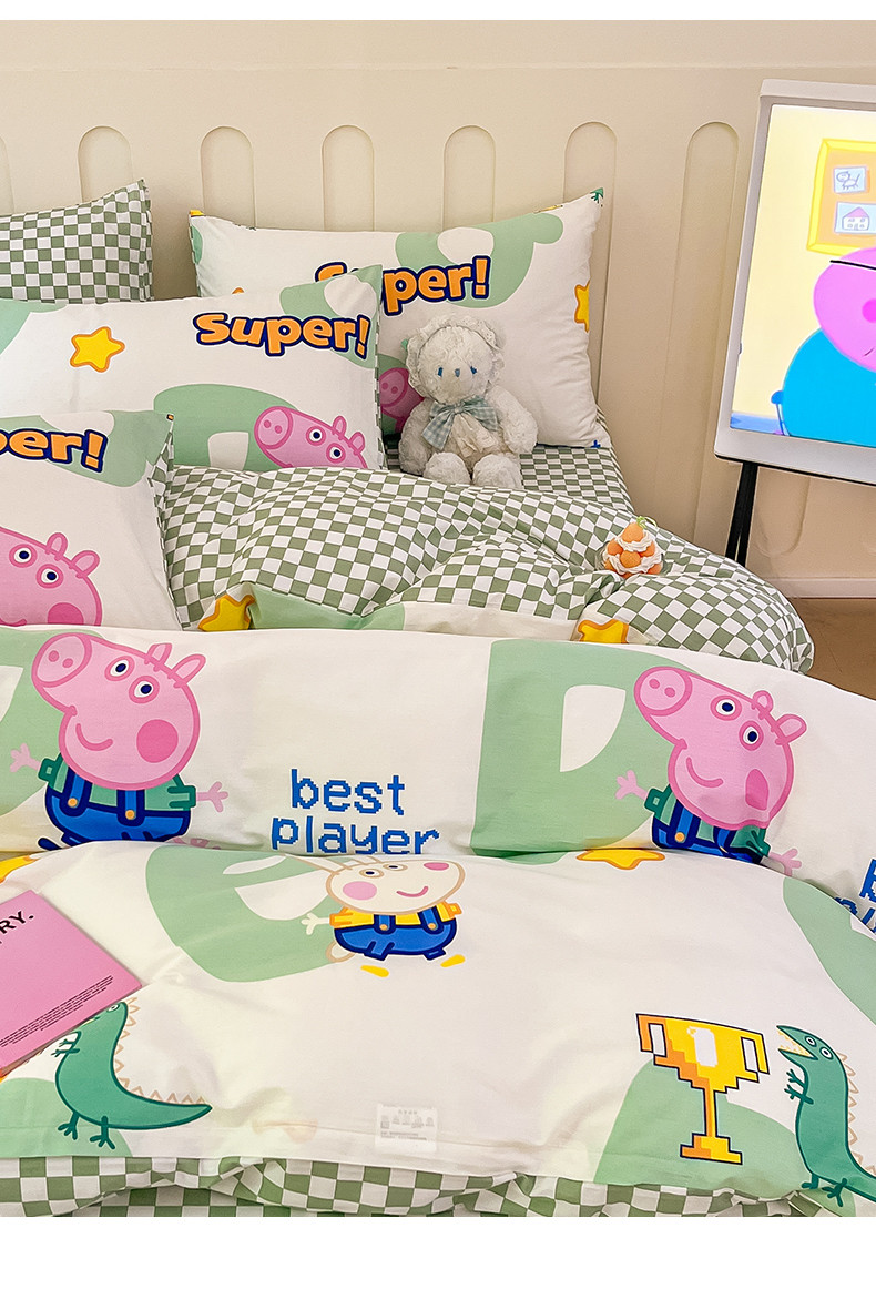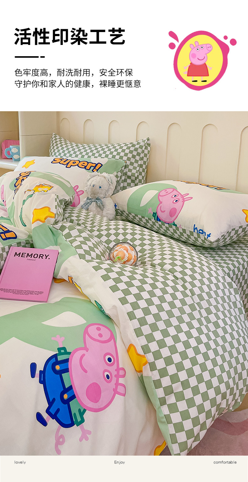 卧趣 2023新品小猪佩奇正版授权全棉印花四件套 佩琪运动会