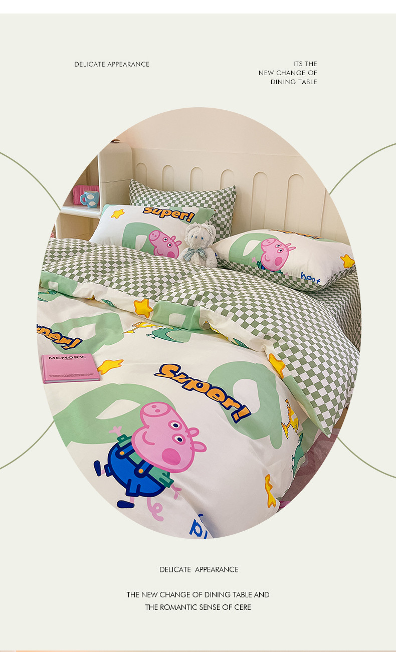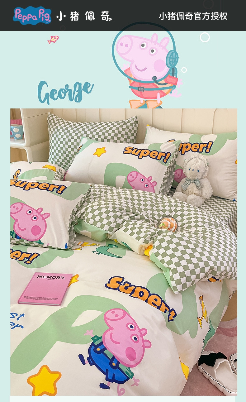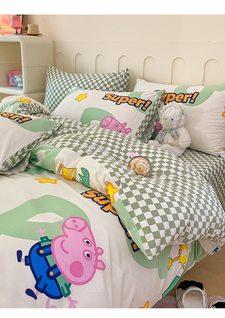 卧趣 2023新品小猪佩奇正版授权全棉印花四件套 佩琪运动会