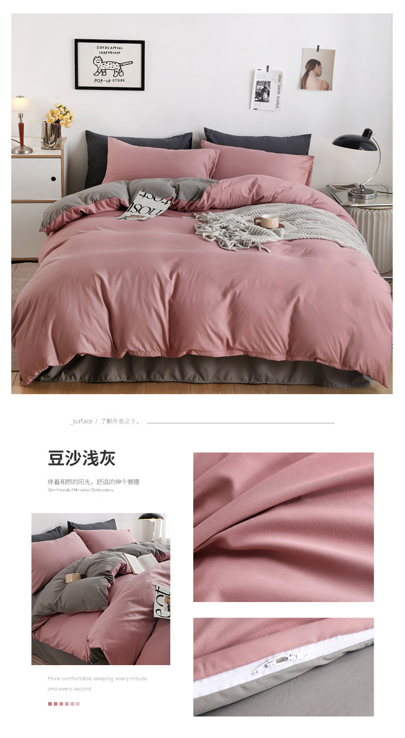 当前位置: 91家纺网 > 商品网购 > 床品套件 > 四件套 > 全棉普通四件套 > 邵依 2025新款格子纯色素色双拼水洗棉非全棉纯棉四件套 豆沙+浅灰