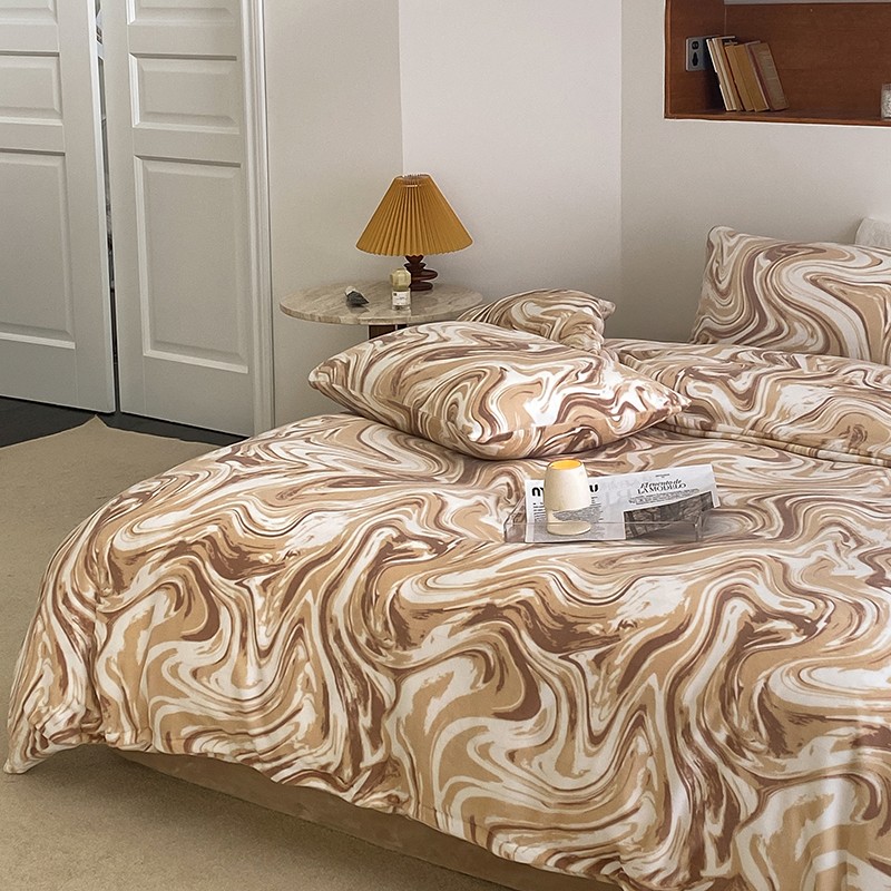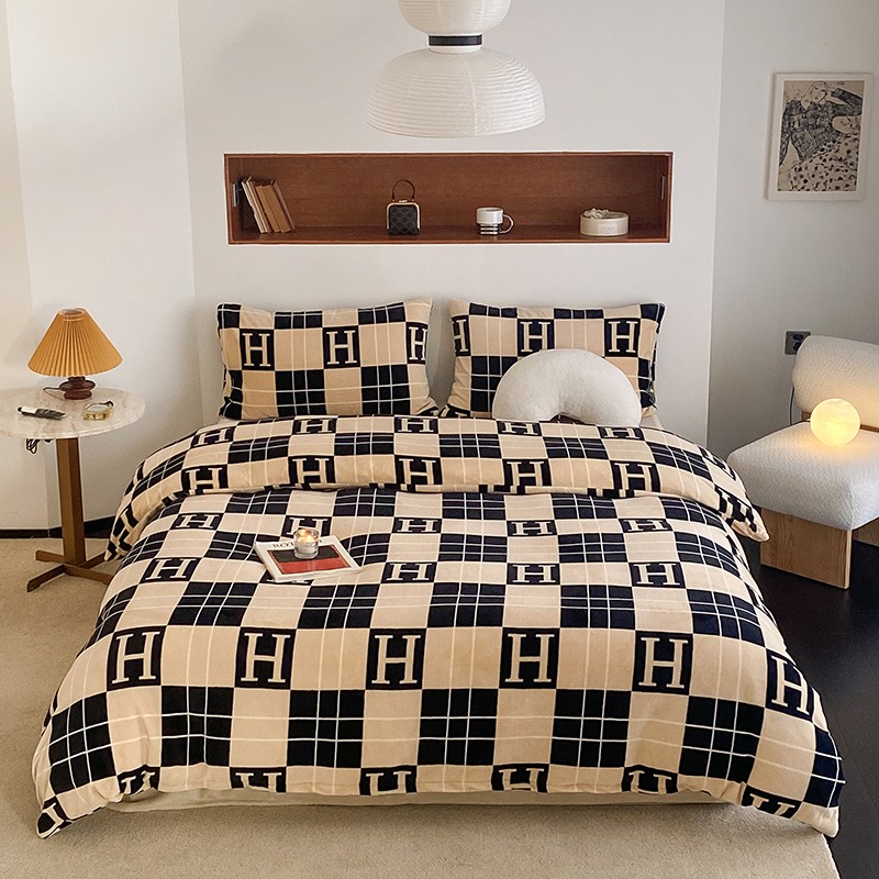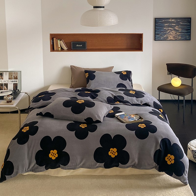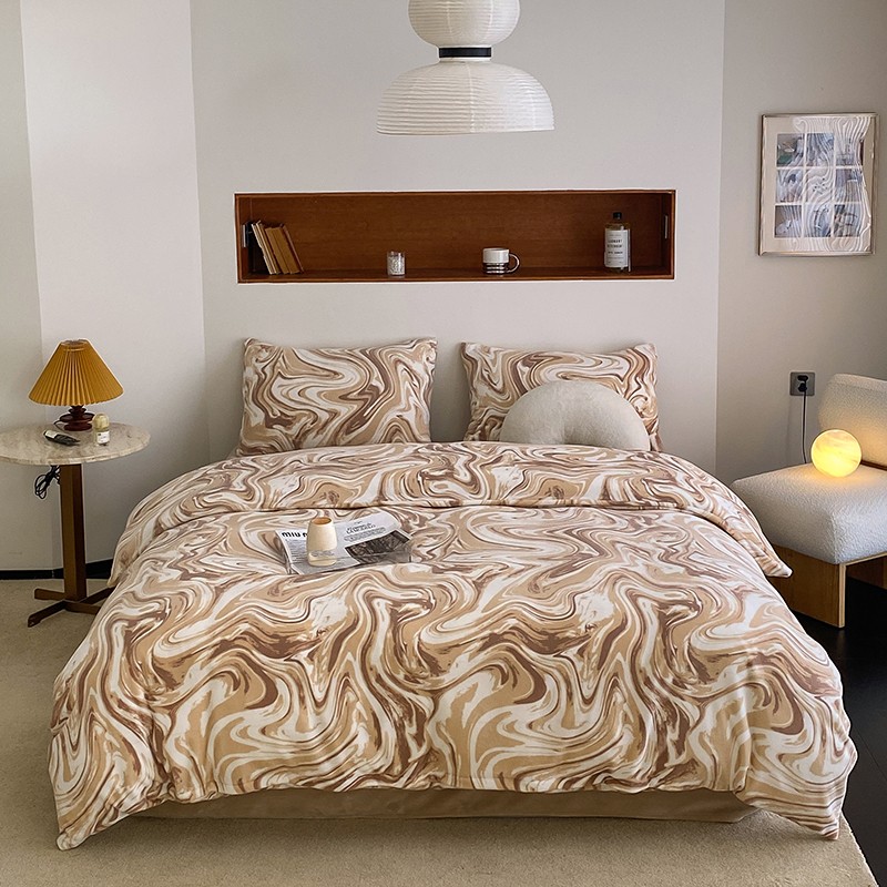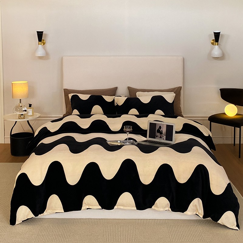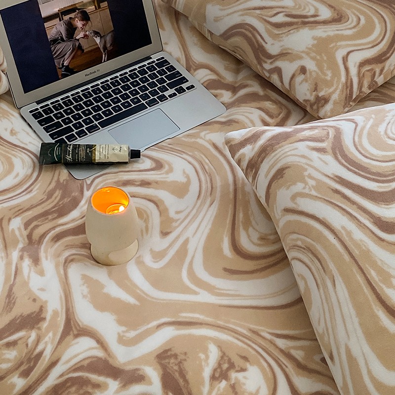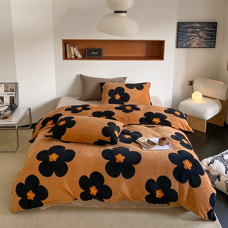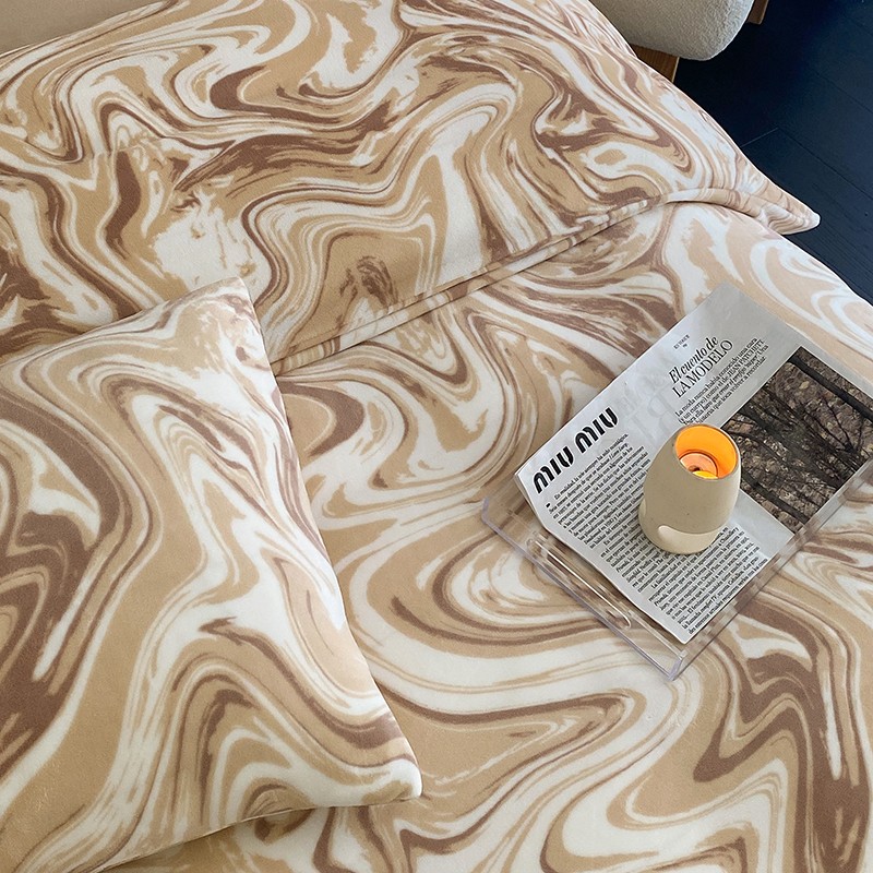 几米 2023秋冬新款套件面料200克牛奶绒印花奶油色系列