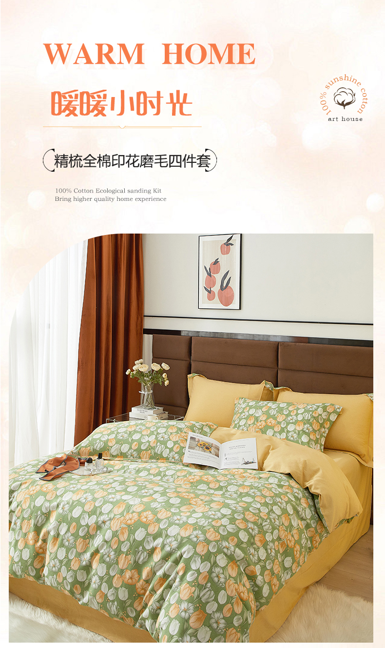 启航家居 2025直播热款全棉精梳磨毛印花四件套-小资格调系列 郁金花海