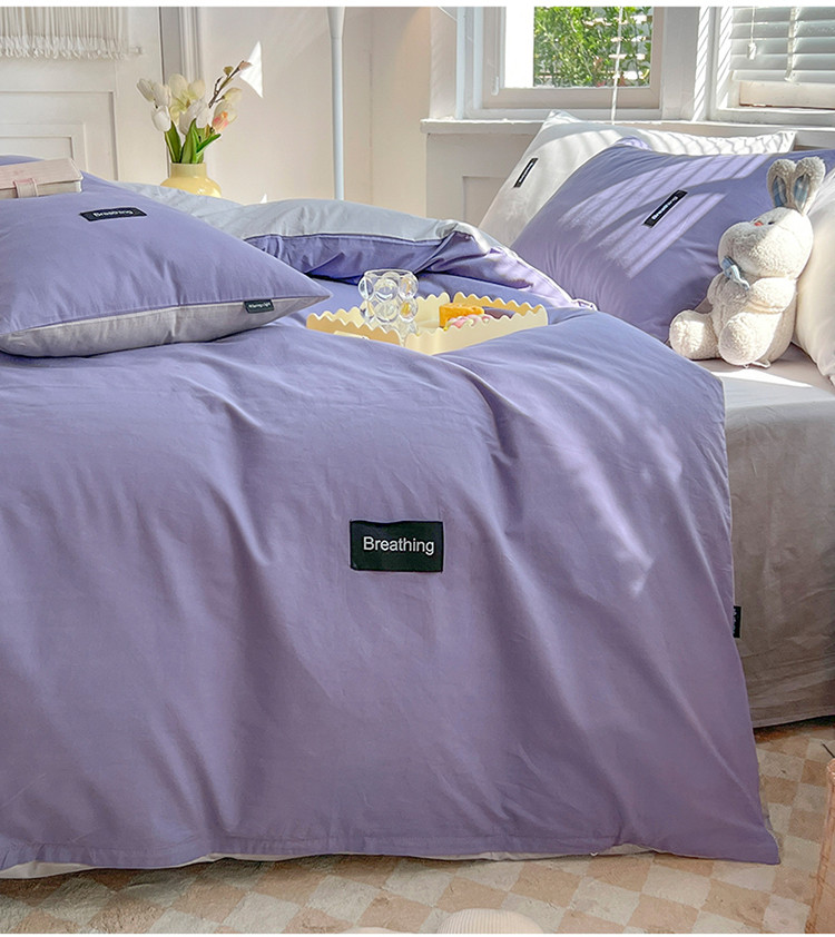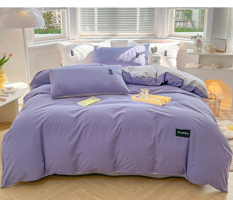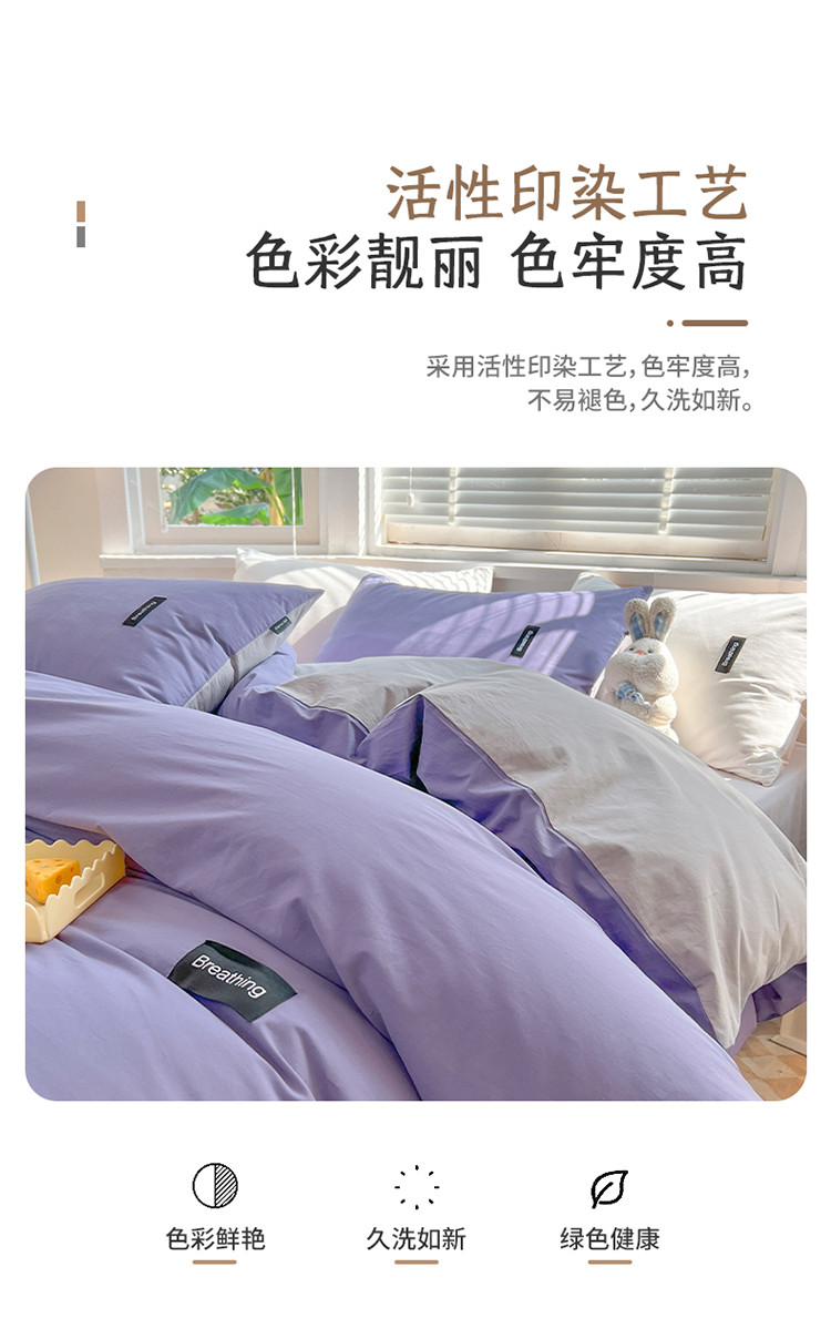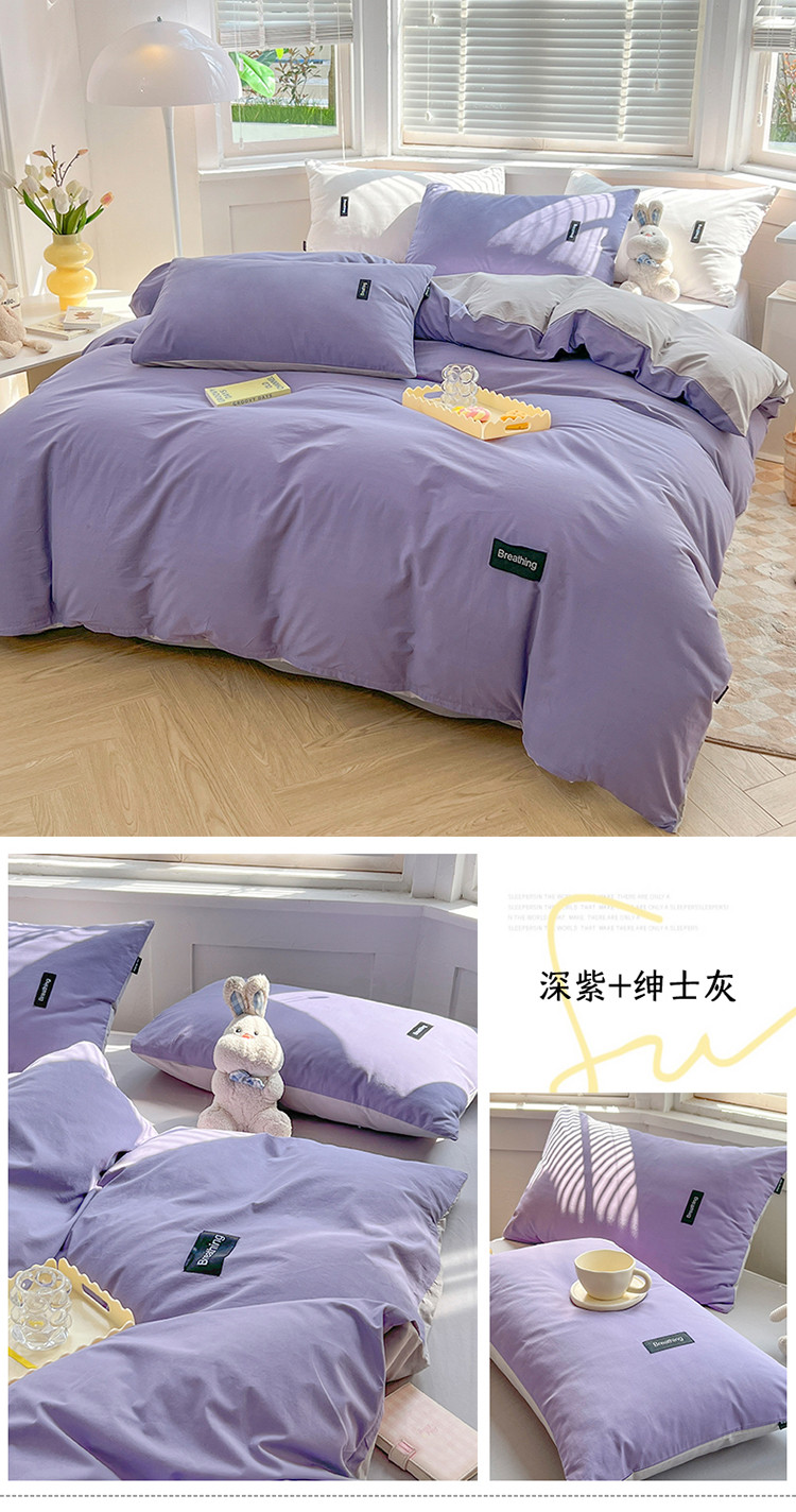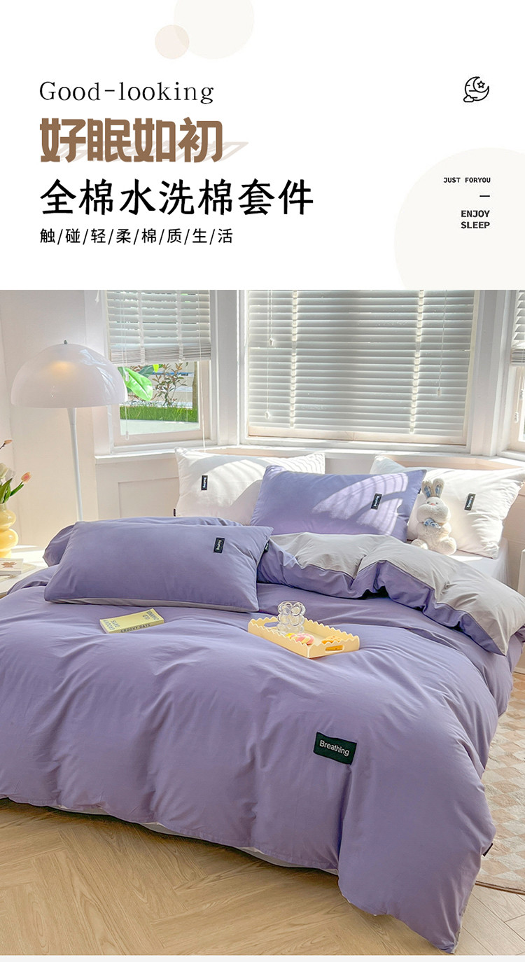 当前位置: 91家纺网 > 商品网购 > 床品套件 > 四件套 > 全棉普通四件套 > 绵庭家纺 2023新款全棉水洗棉拼色四件套 深紫+绅士灰