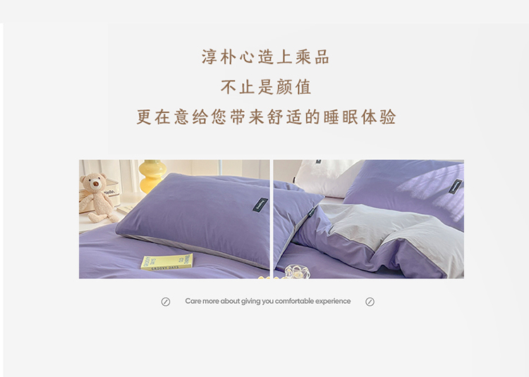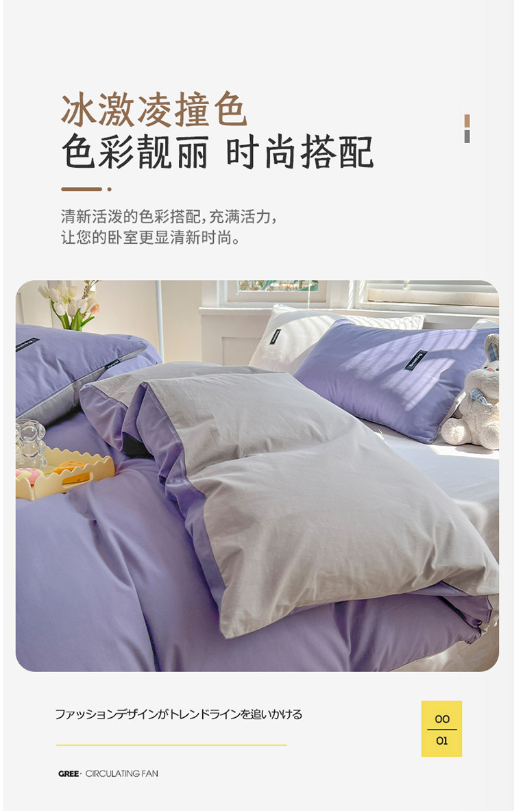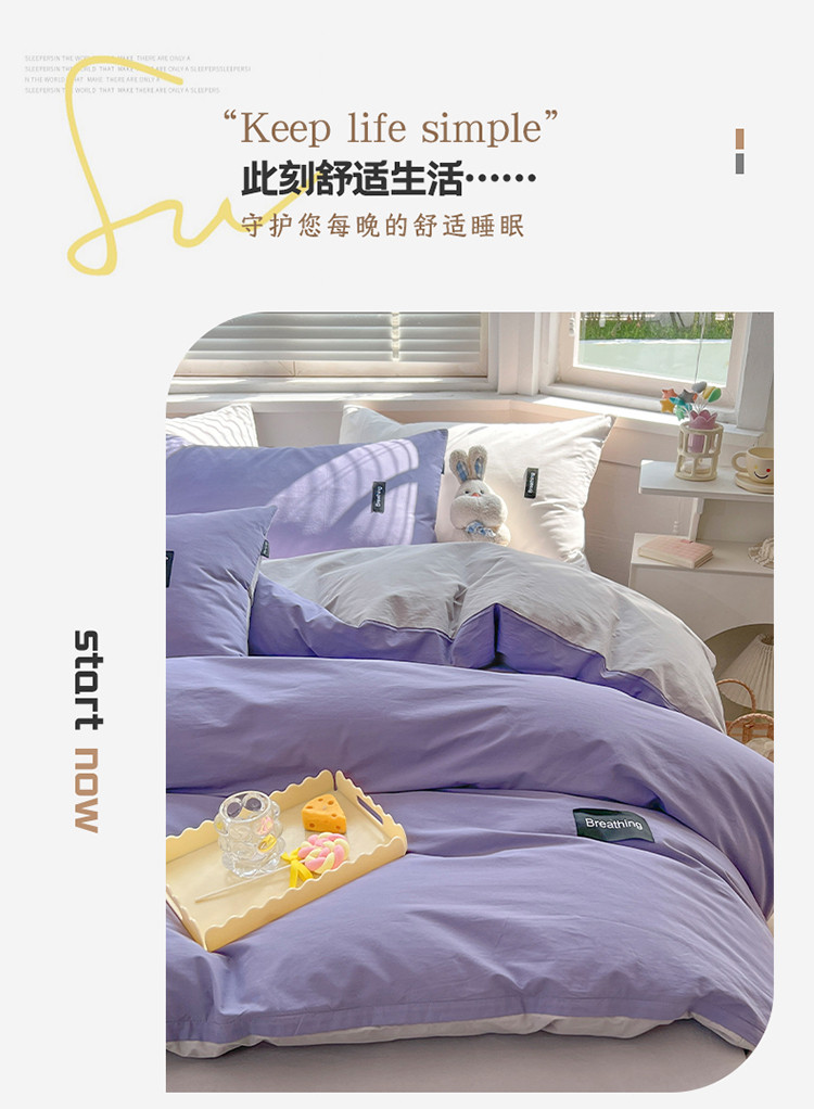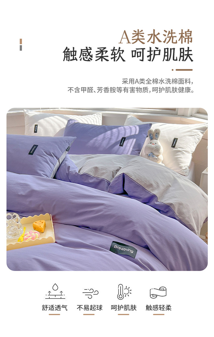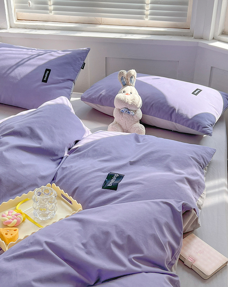 当前位置: 91家纺网 > 商品网购 > 床品套件 > 四件套 > 全棉普通四件套 > 绵庭家纺 2023新款全棉水洗棉拼色四件套 深紫+绅士灰