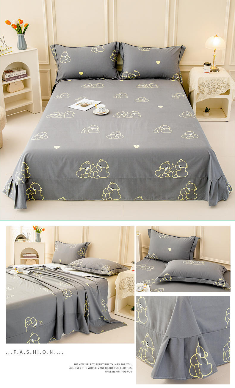 新款50双股澳棉印花单床单定做定制尺寸 抱抱熊-灰