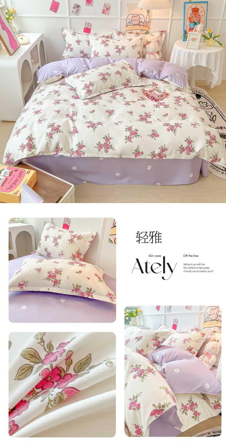 商品名称:花伞家居 2024直播网销斜纹加厚磨毛印花植物羊绒四件套 轻雅