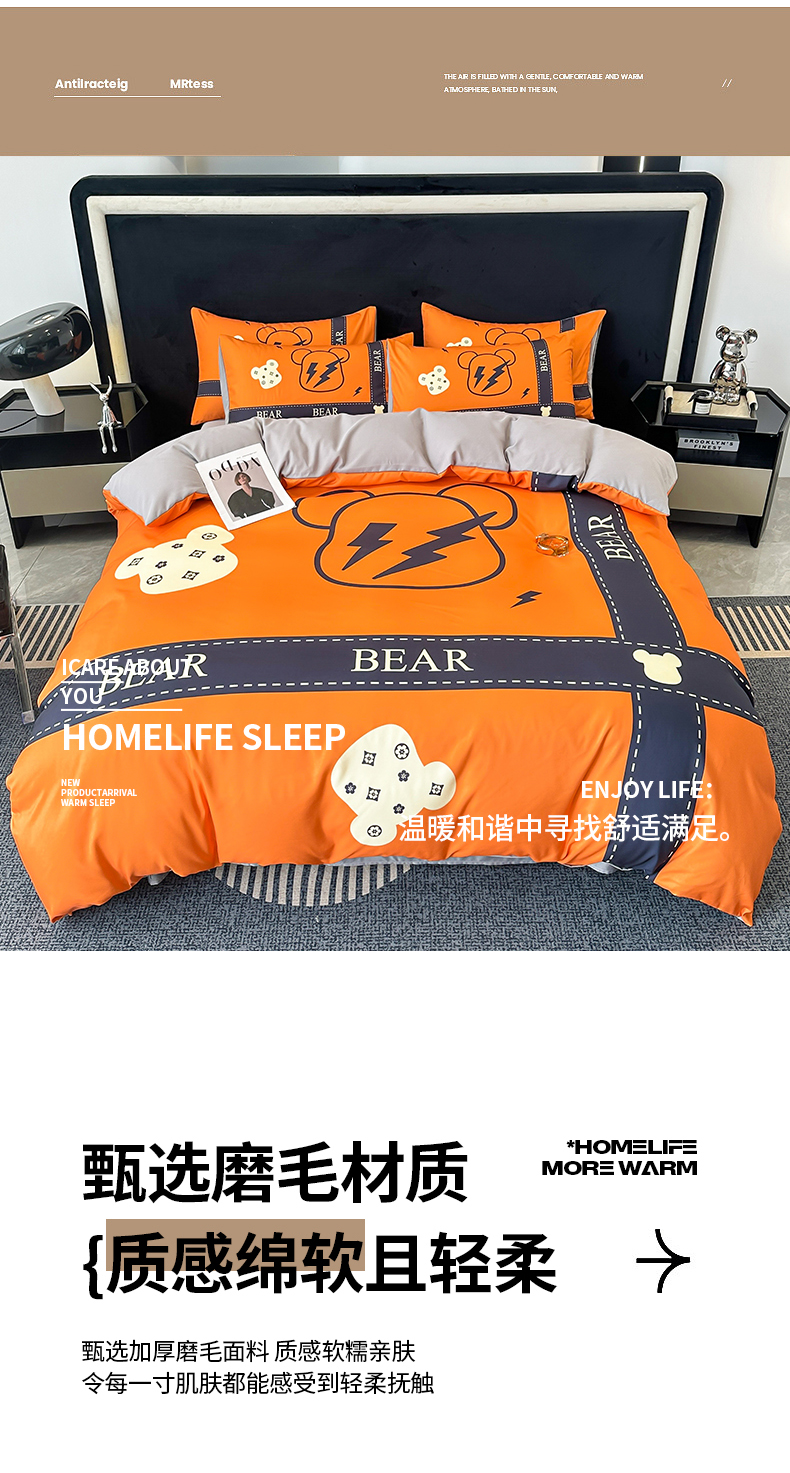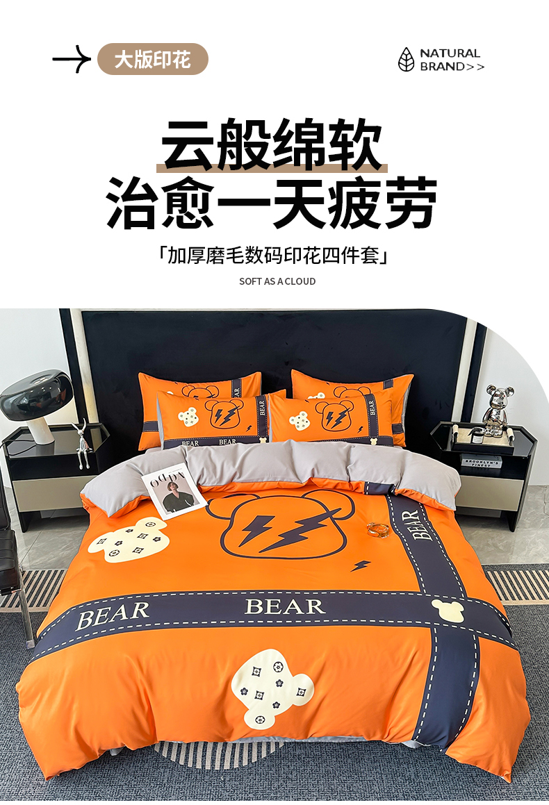 当前位置: 91家纺网 > 商品网购 > 床品套件 > 四件套 > 普通磨毛四件套 > 色鬼布艺 2023新款加厚双面磨毛数码大版印花四件套 闪电熊