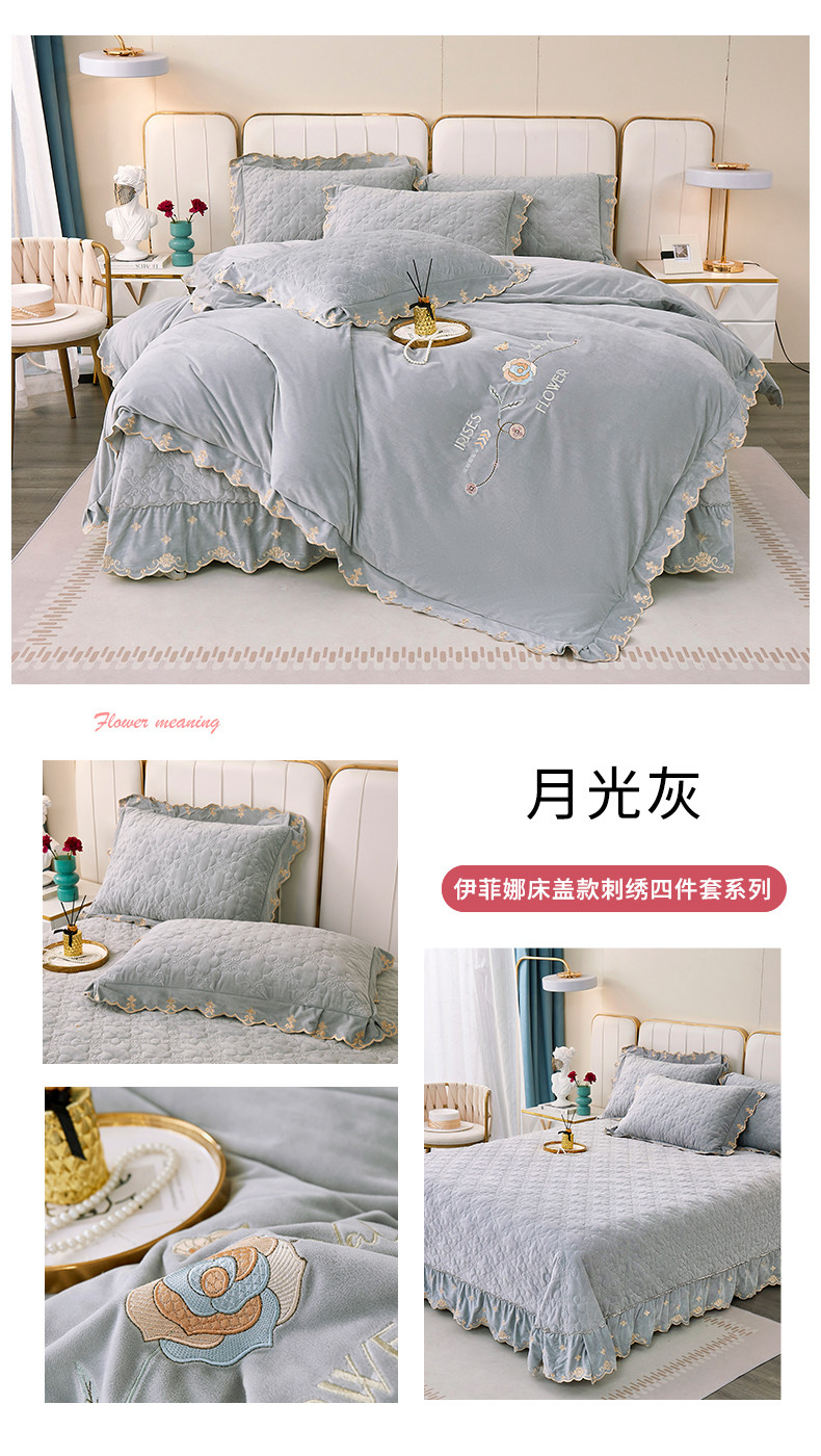 商品名称:卡迪亚 2023新款婴儿绒床盖款刺绣四件套床裙系列 月光灰