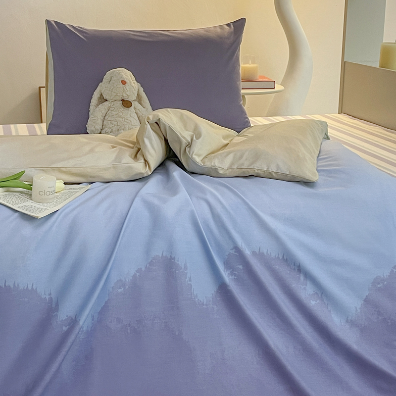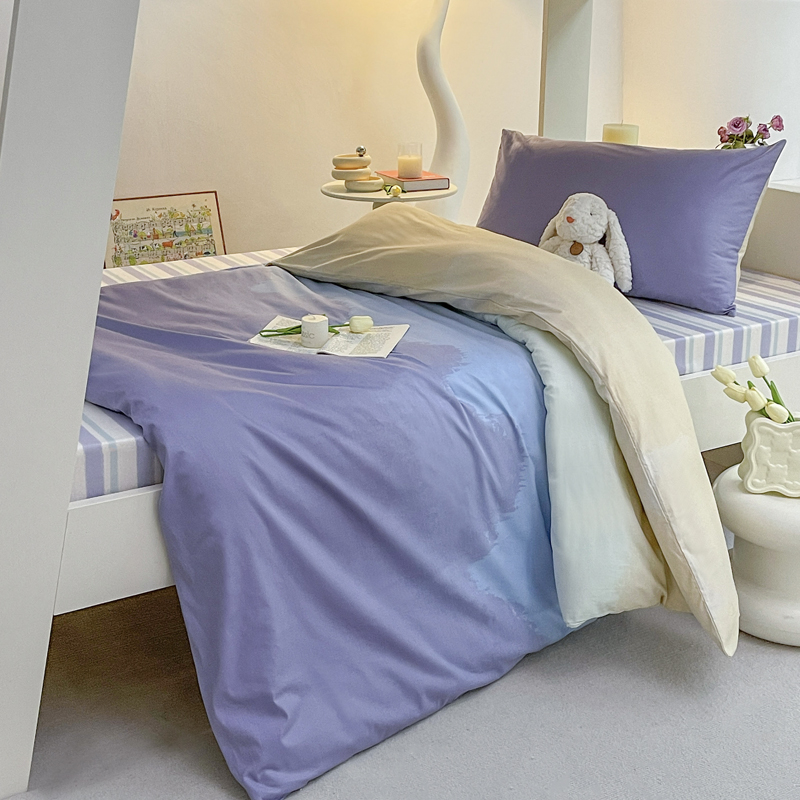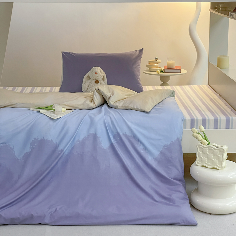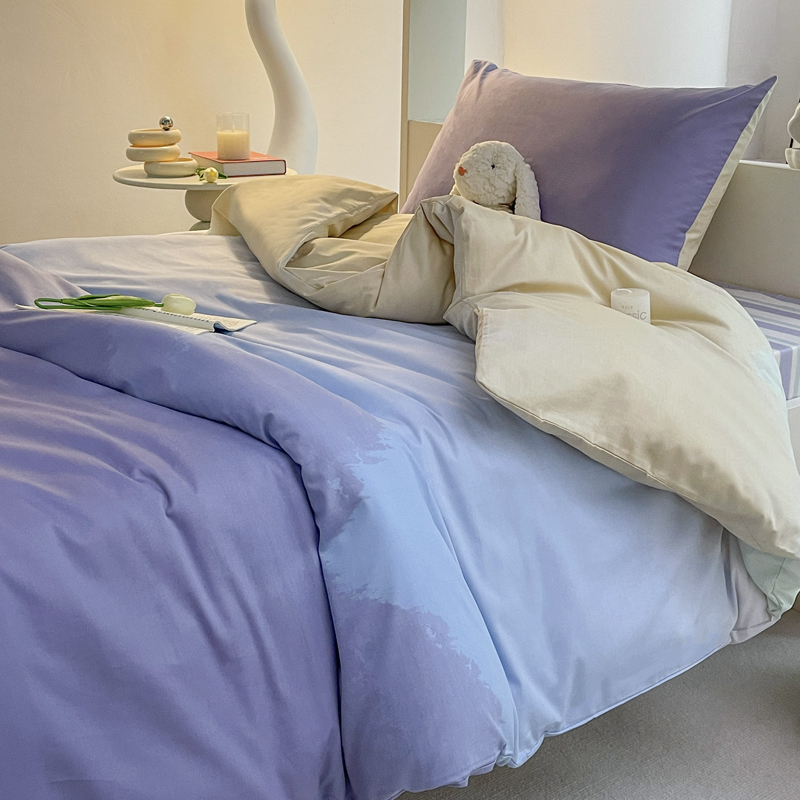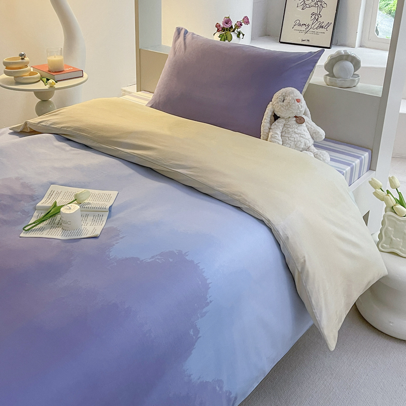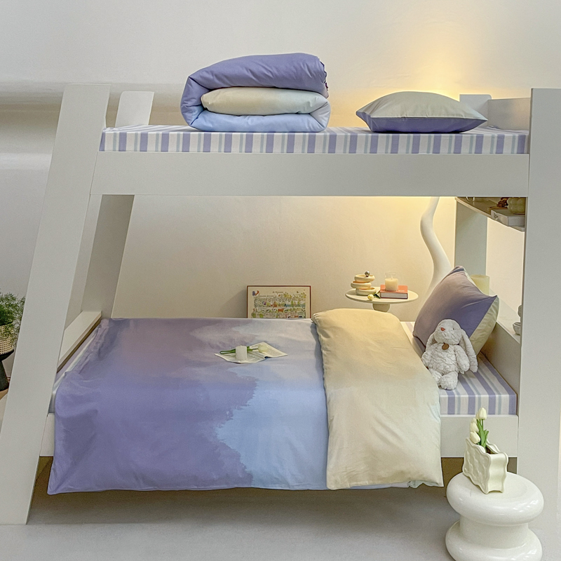 昔可家纺 2023新款少女粉渐变色上下铺全棉四件套 渐变紫调