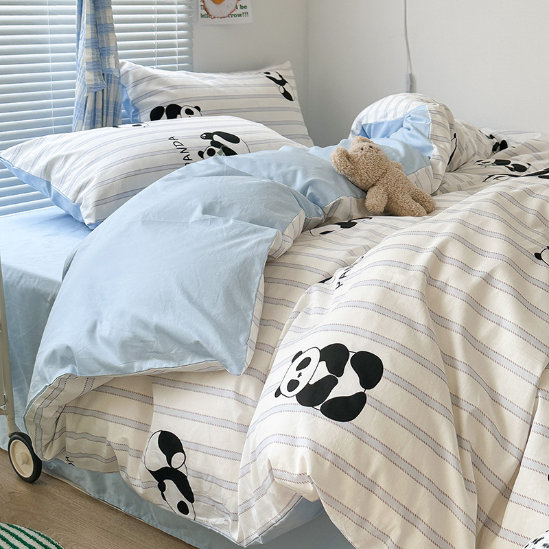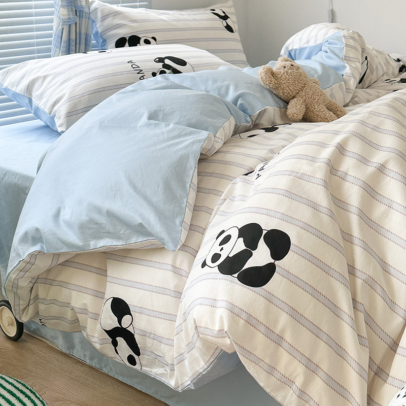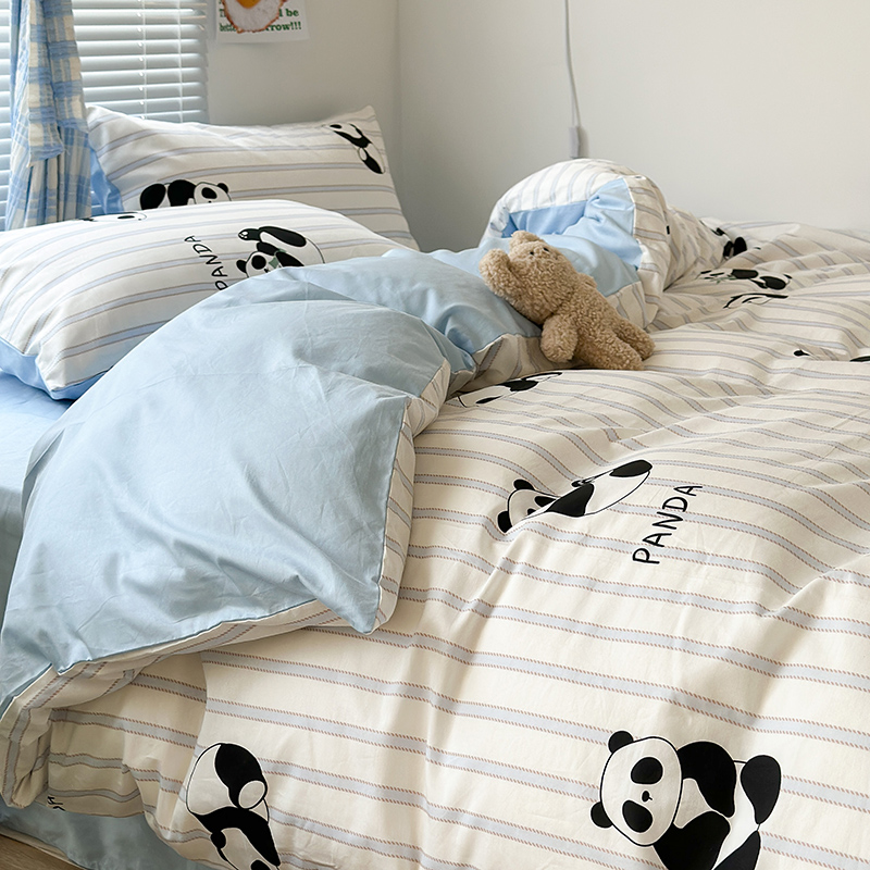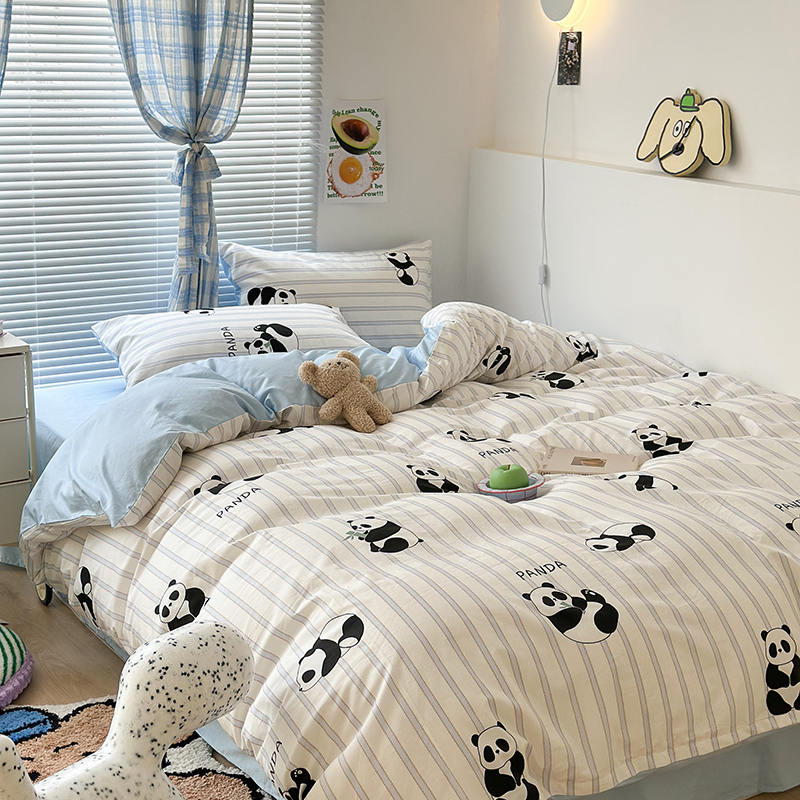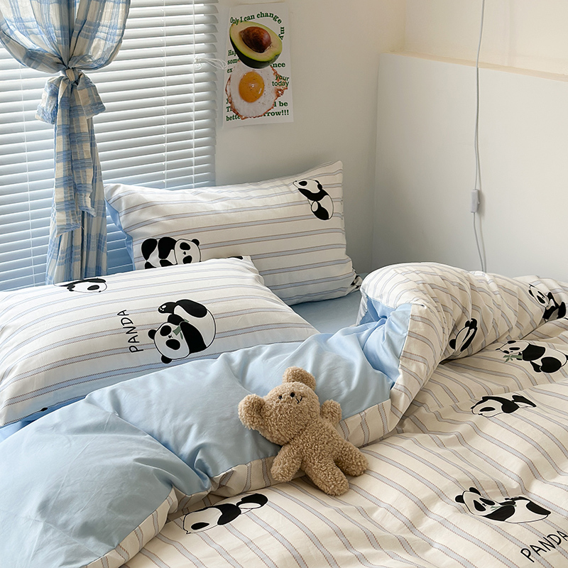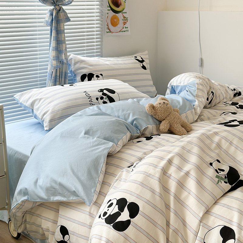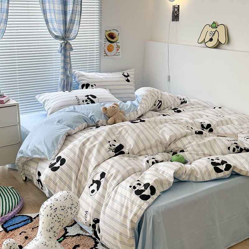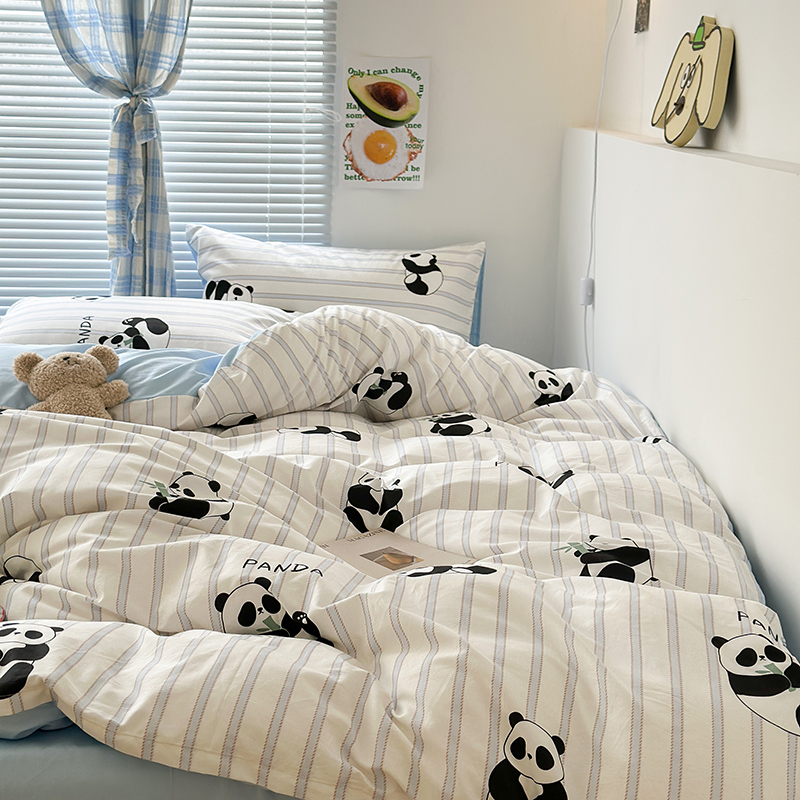 昔可家纺 2023新款多巴胺卡通学生季全棉四件套 呆萌熊猫