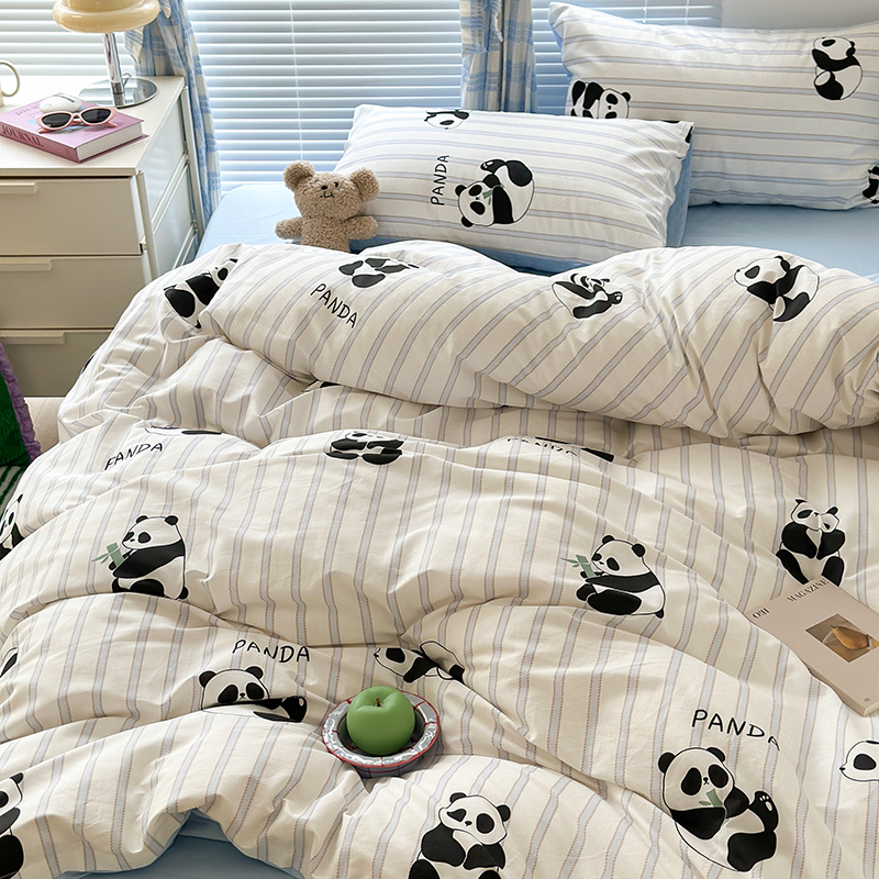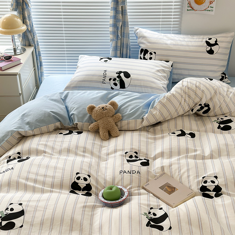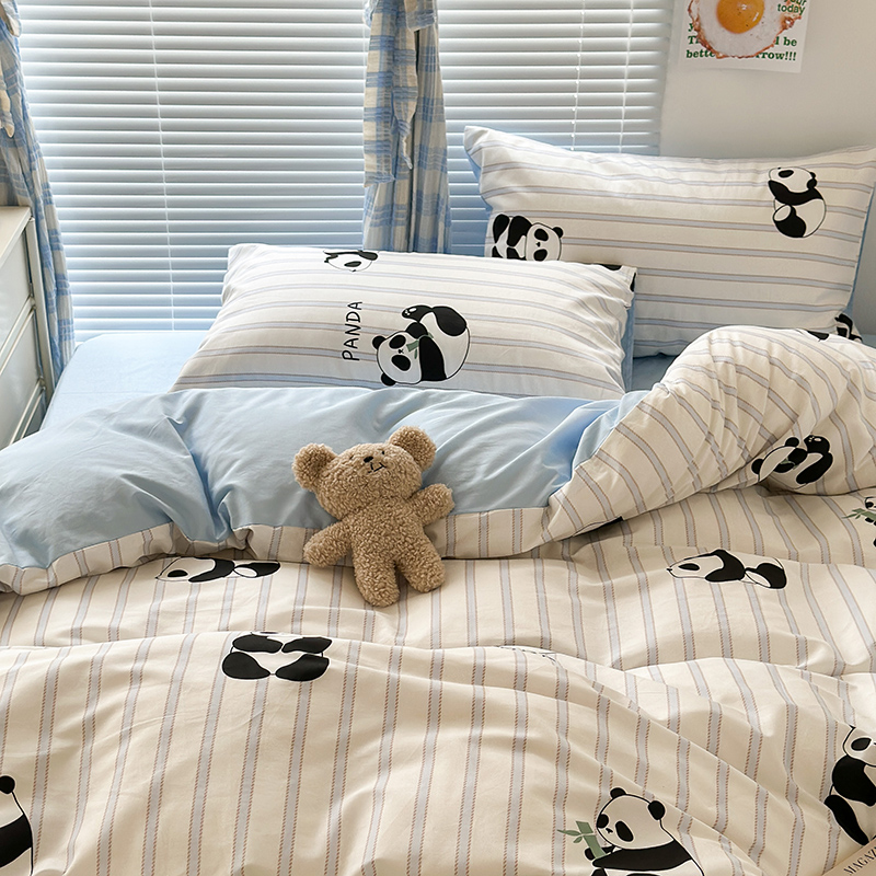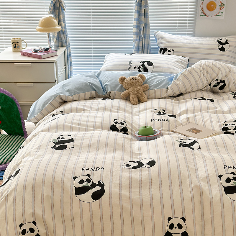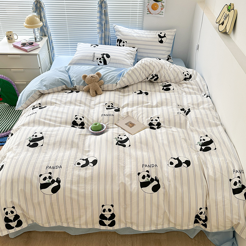 商品名称:昔可家纺 2023新款多巴胺卡通学生季全棉四件套 呆萌熊猫