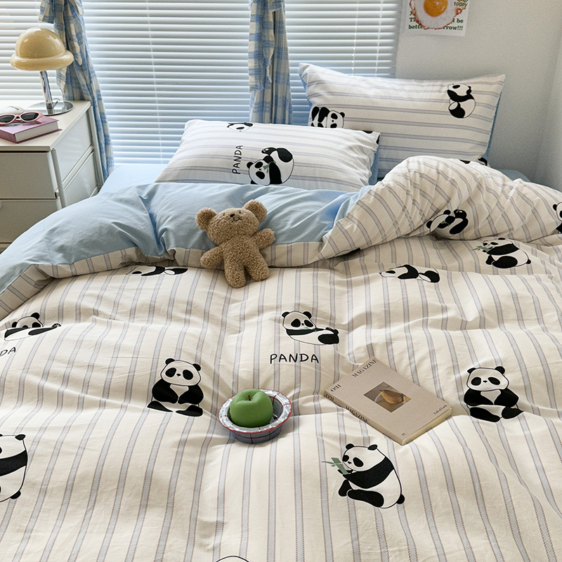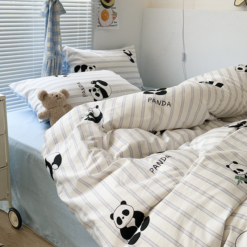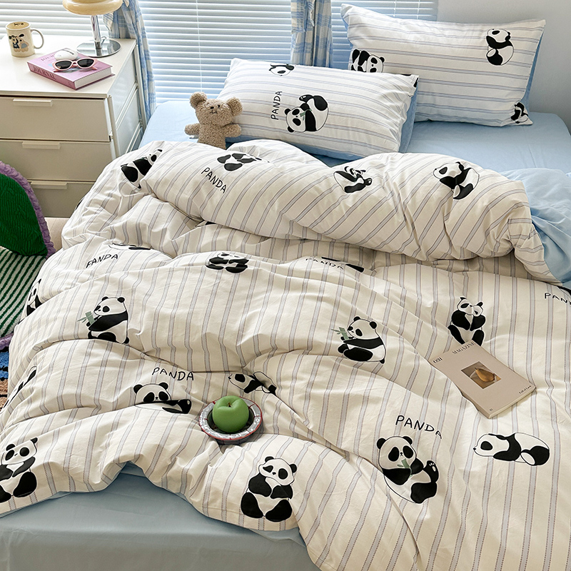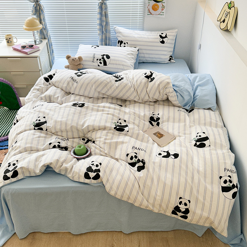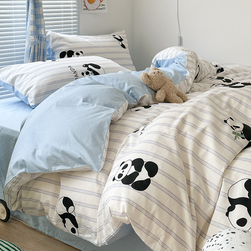 商品名称:昔可家纺 2023新款多巴胺卡通学生季全棉四件套 呆萌熊猫