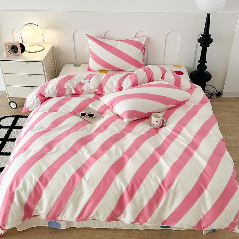 (总)昔可家纺 2023新款多巴胺少女风条纹全棉四件套