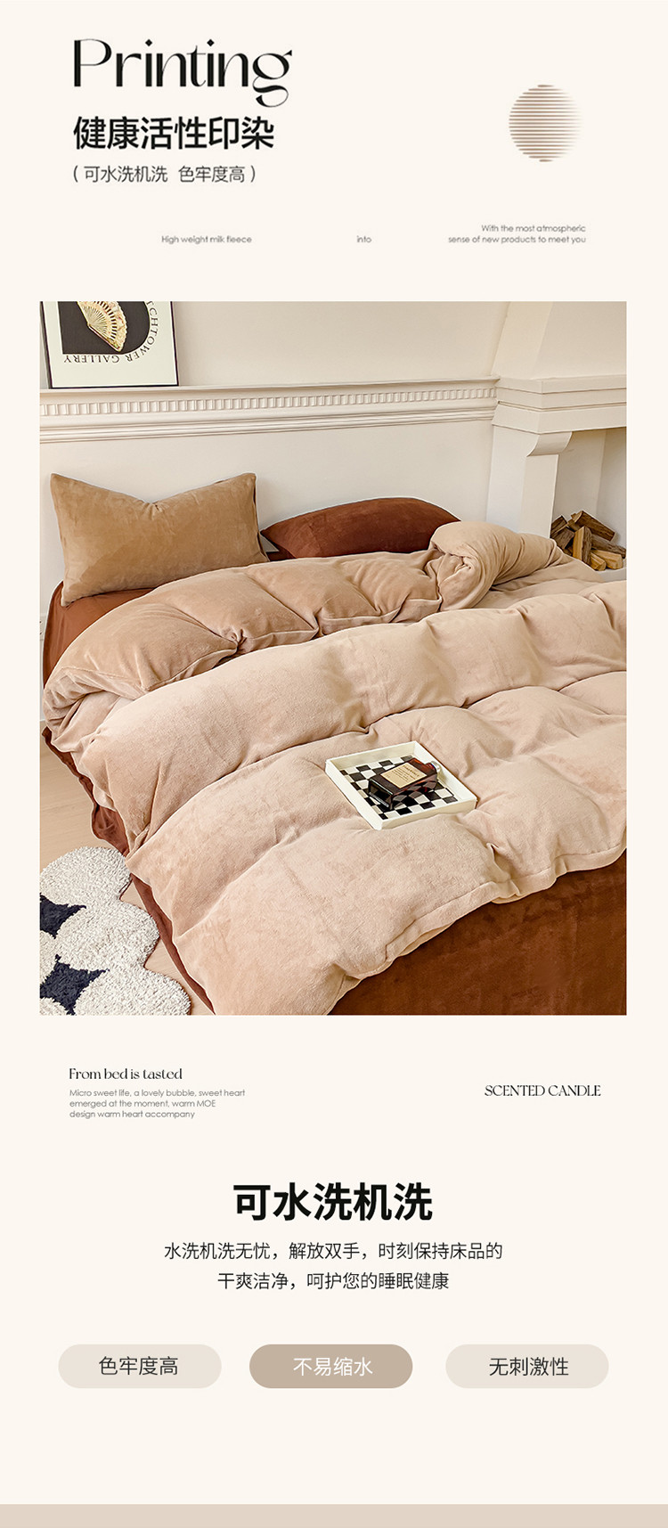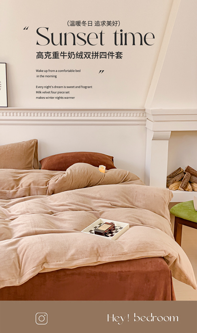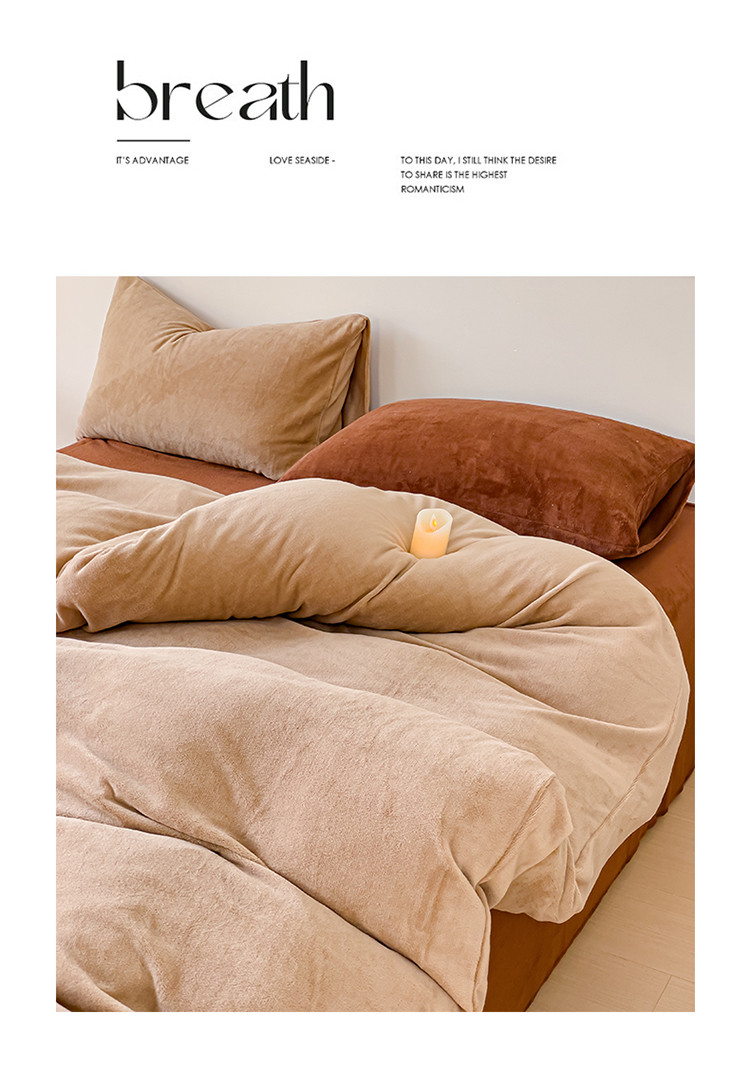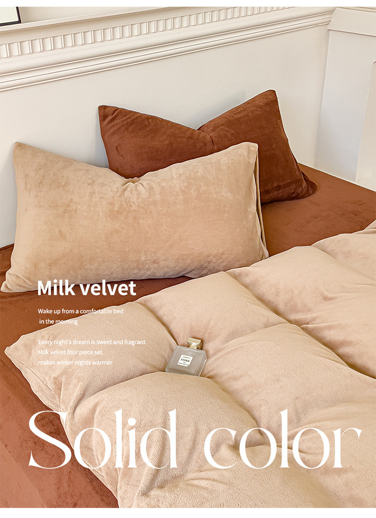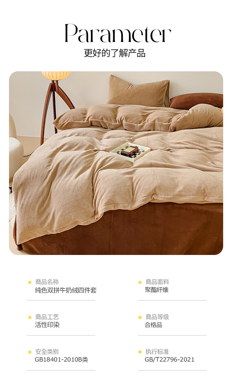 商品名称:珺柔 2023年新款双拼色纯色牛奶绒四件套双拼浅咖咖
