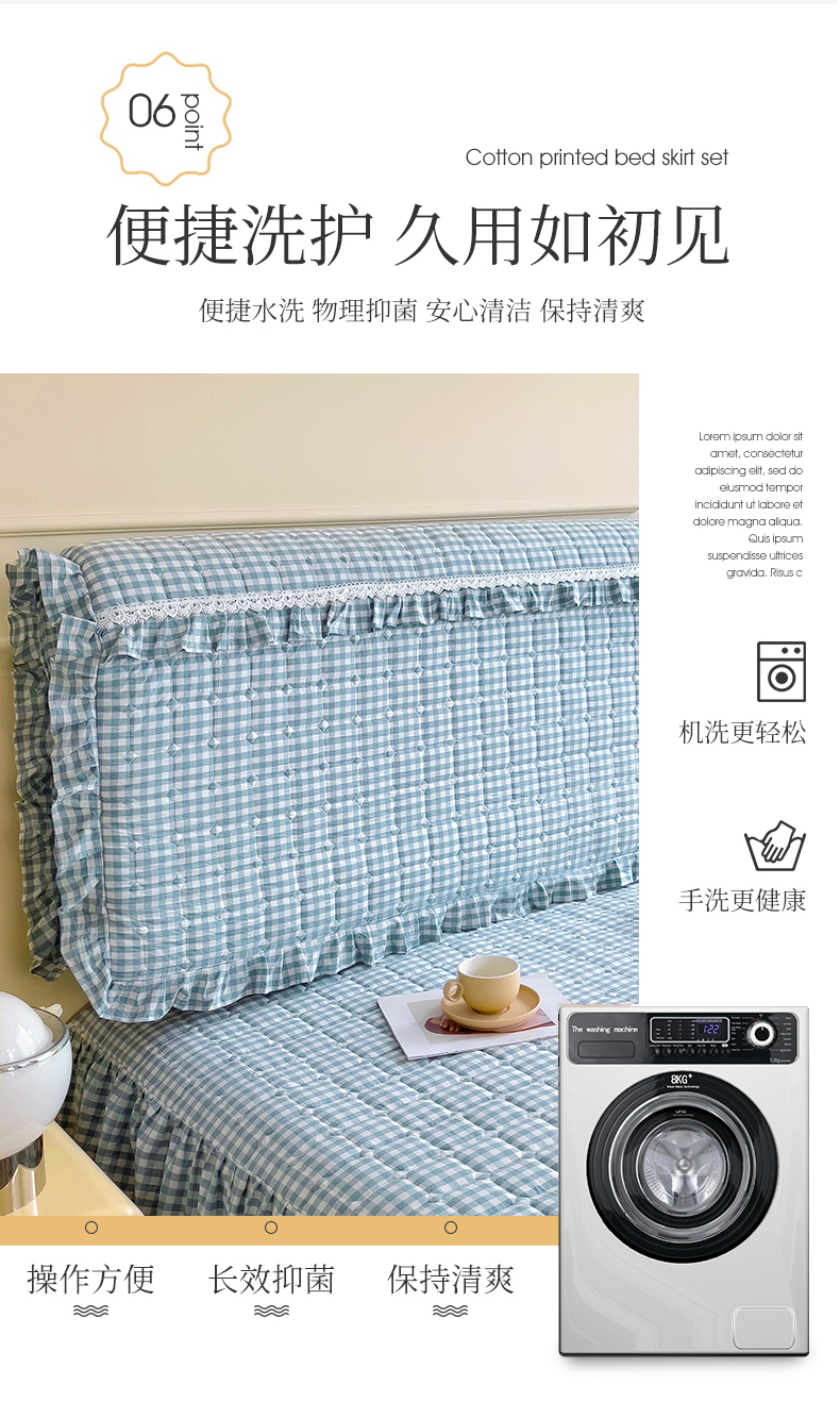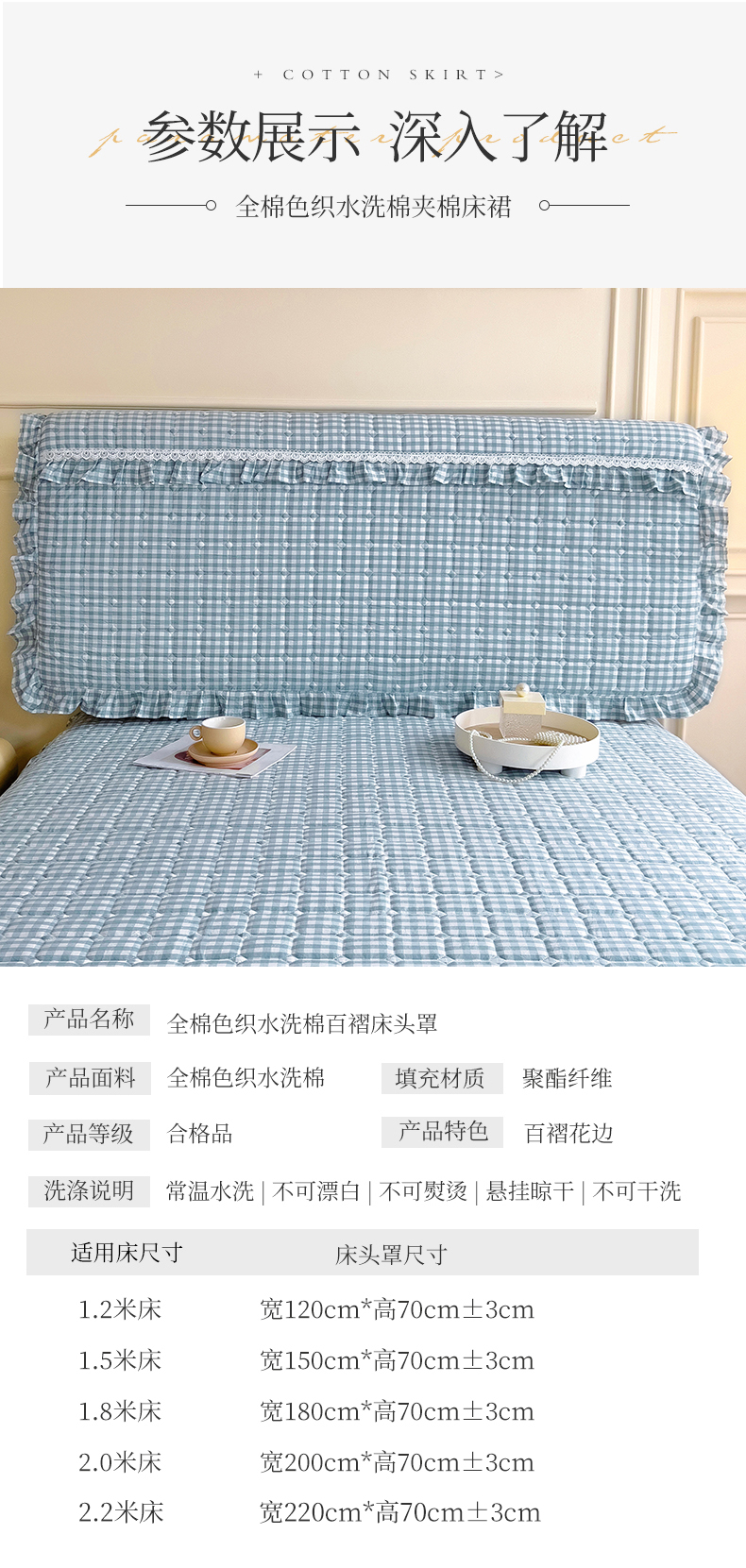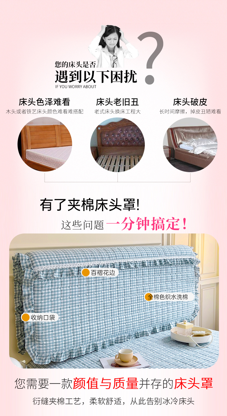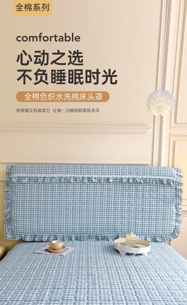 (总)十个点家纺 2025新款千鸟格磨毛绗缝夹棉纯色花边床头罩,经典白色,经典兰色,经典浅灰,经典浅驼,经典深灰,经典玉粉