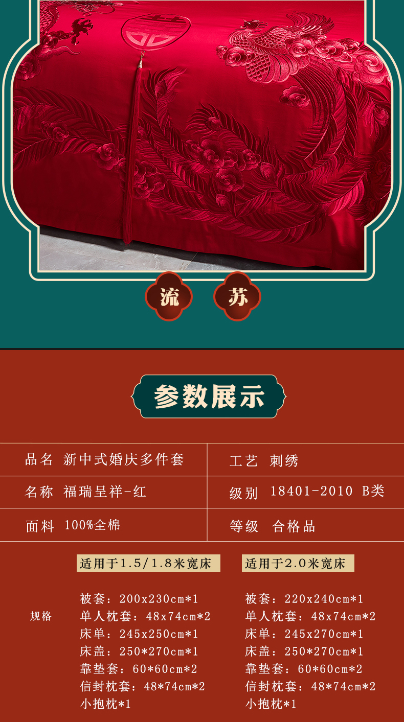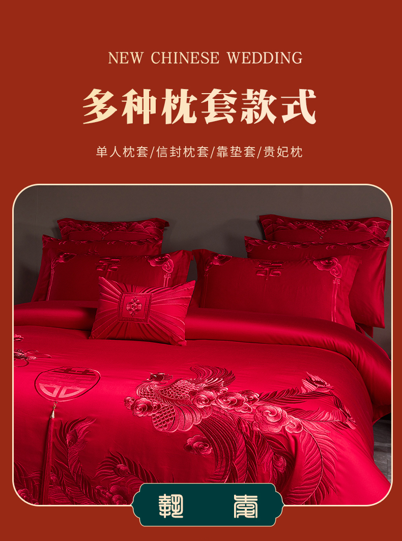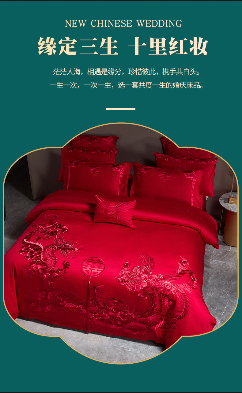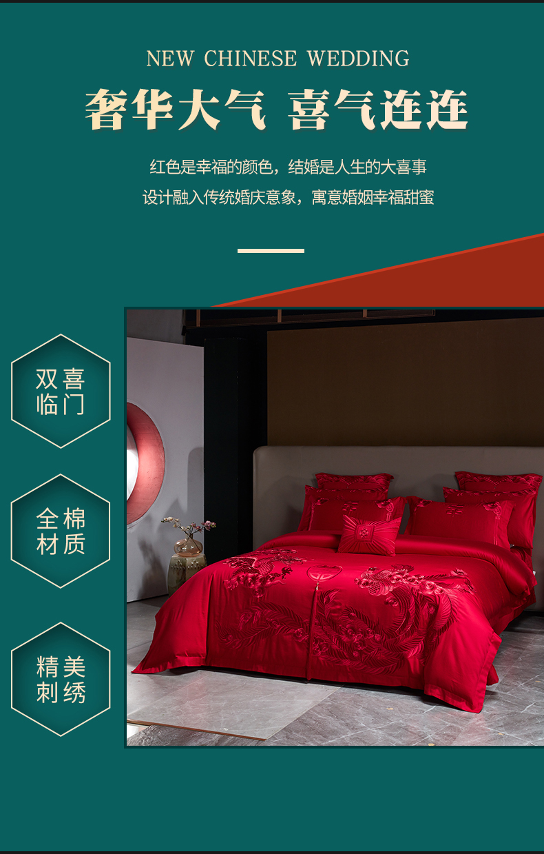 当前位置: 91家纺网 > 商品网购 > 床品套件 > 多件套 > 多件套 > 宏羽纺 2024新款纯棉新中式刺绣婚庆多件套福瑞呈祥-红