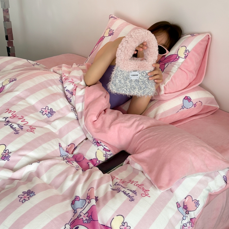 美乐迪家纺 2023新款正版三丽鸥牛奶绒四件套 甜甜美乐蒂