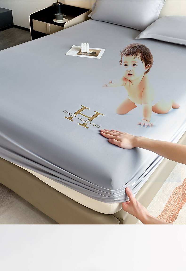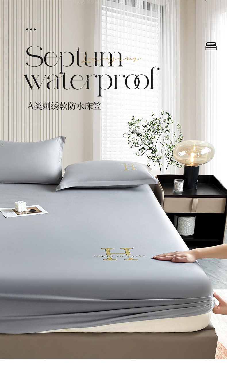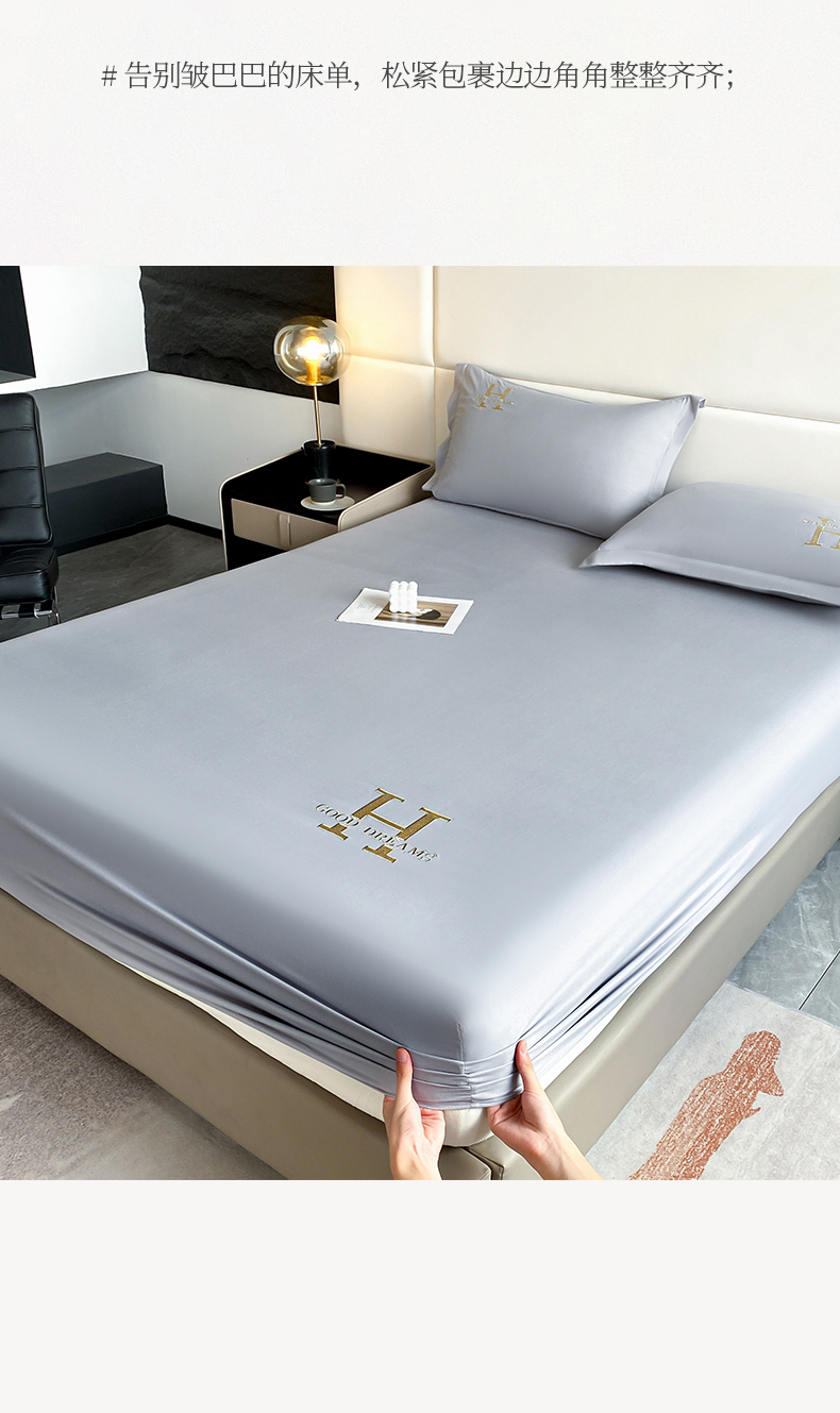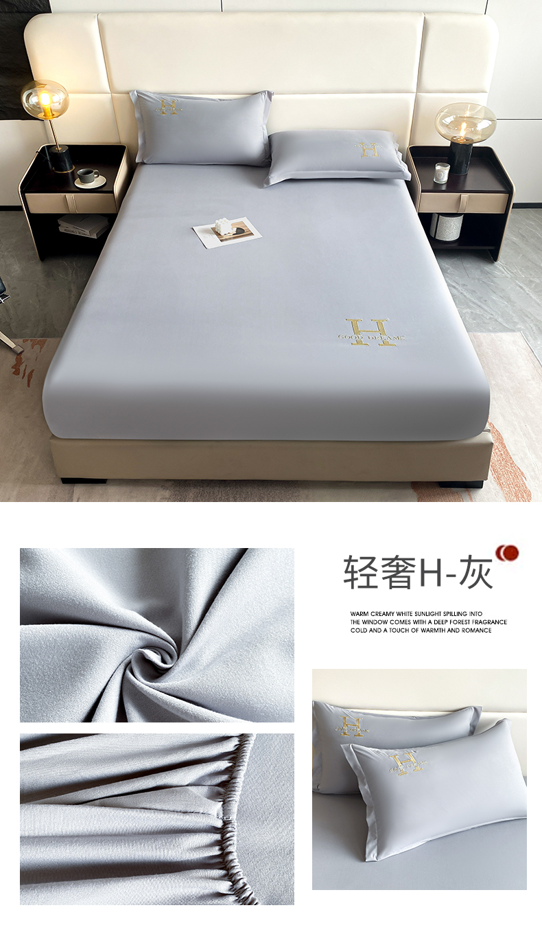• 91家纺网 家纺一手货源 找家纺 居眠 2023新款原棉单层防水H刺绣床笠 轻奢H-灰