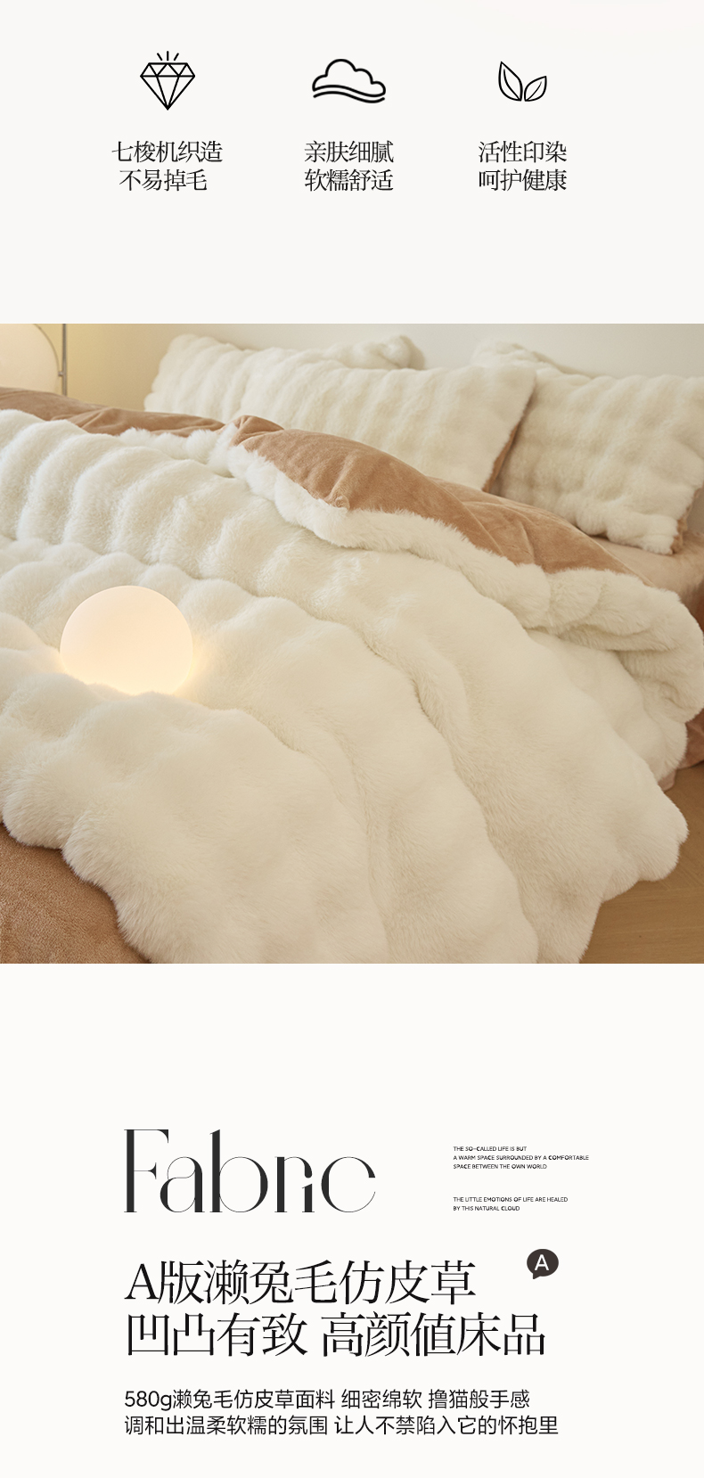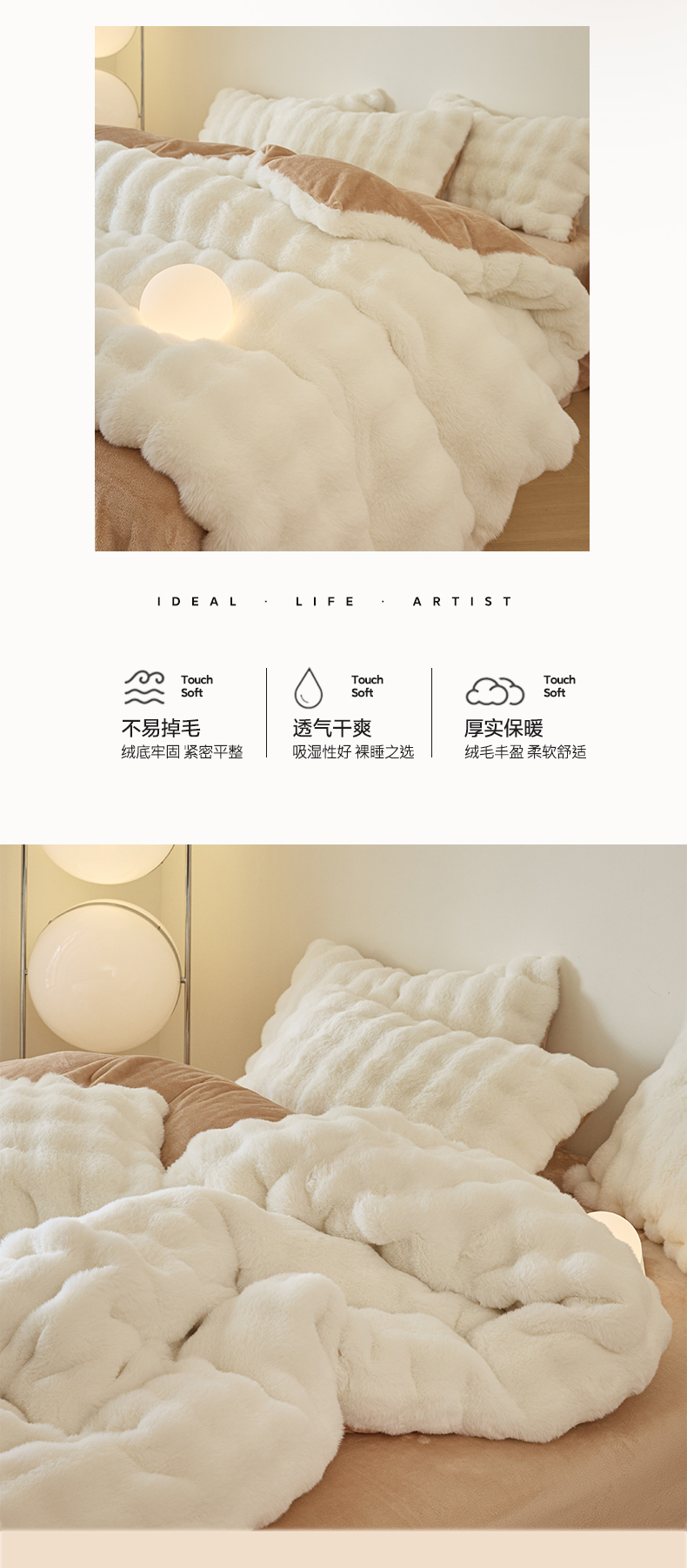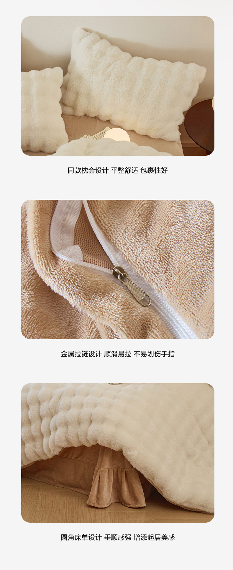 商品名称:铠畅2023款高端A类580克獭兔毛11-12斤皮草双面加厚牛奶绒兔兔绒大泡泡系列四件套 大泡泡奶白咖