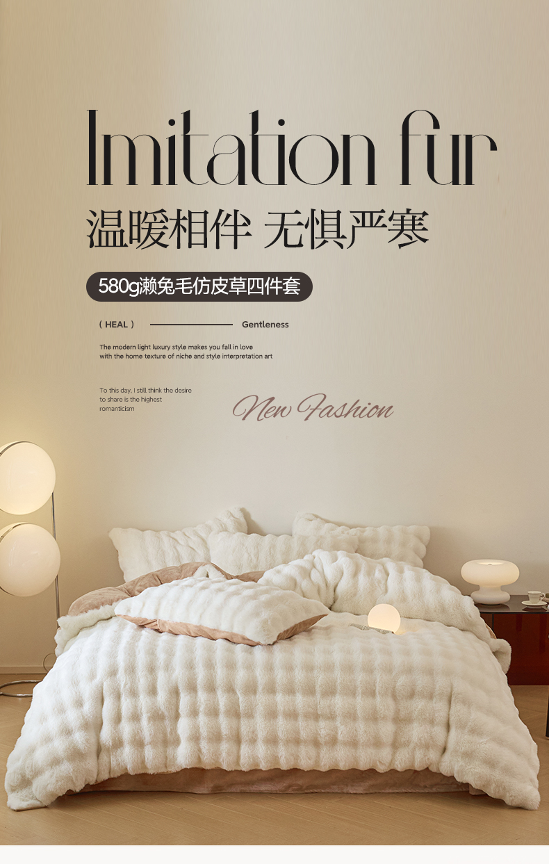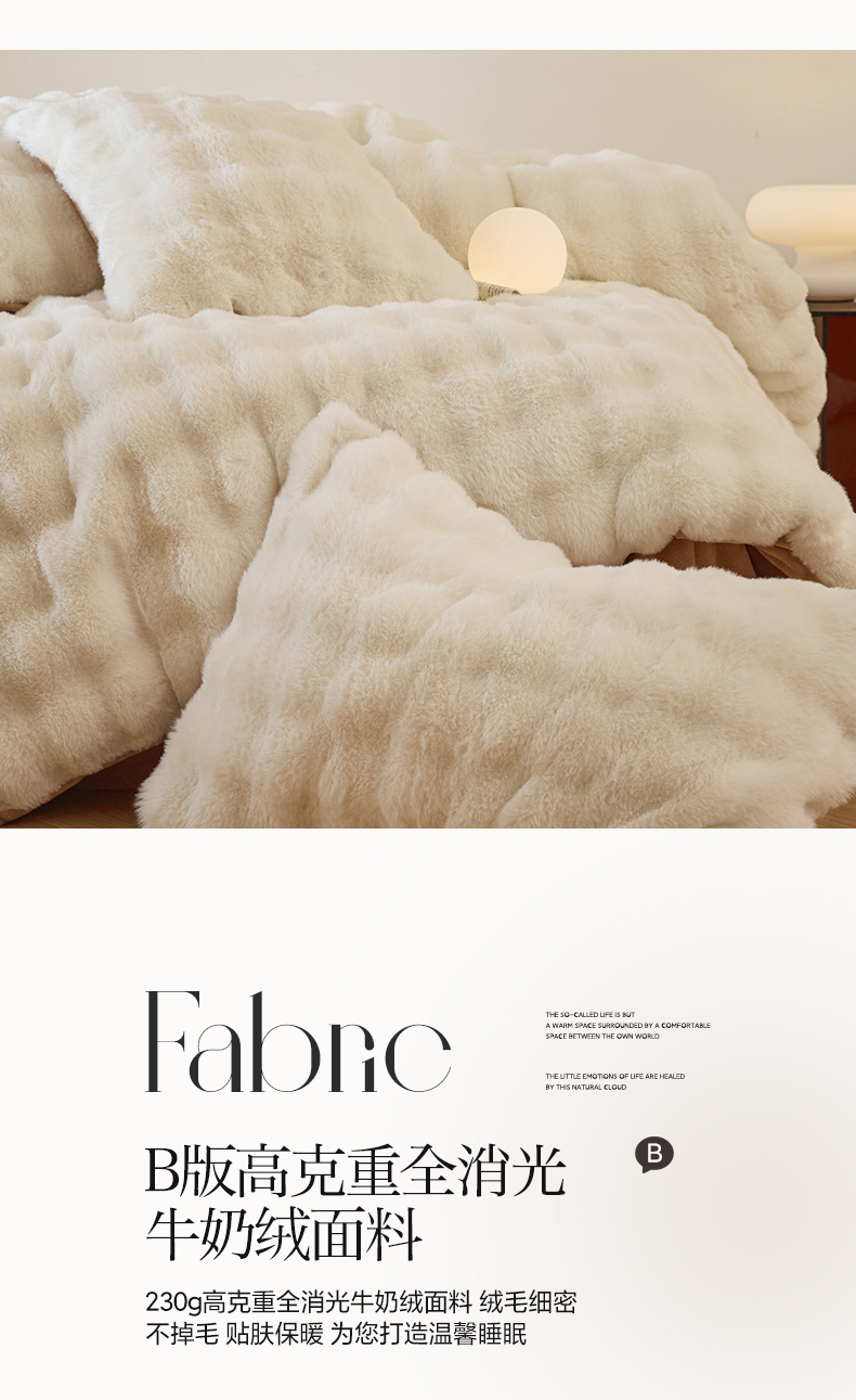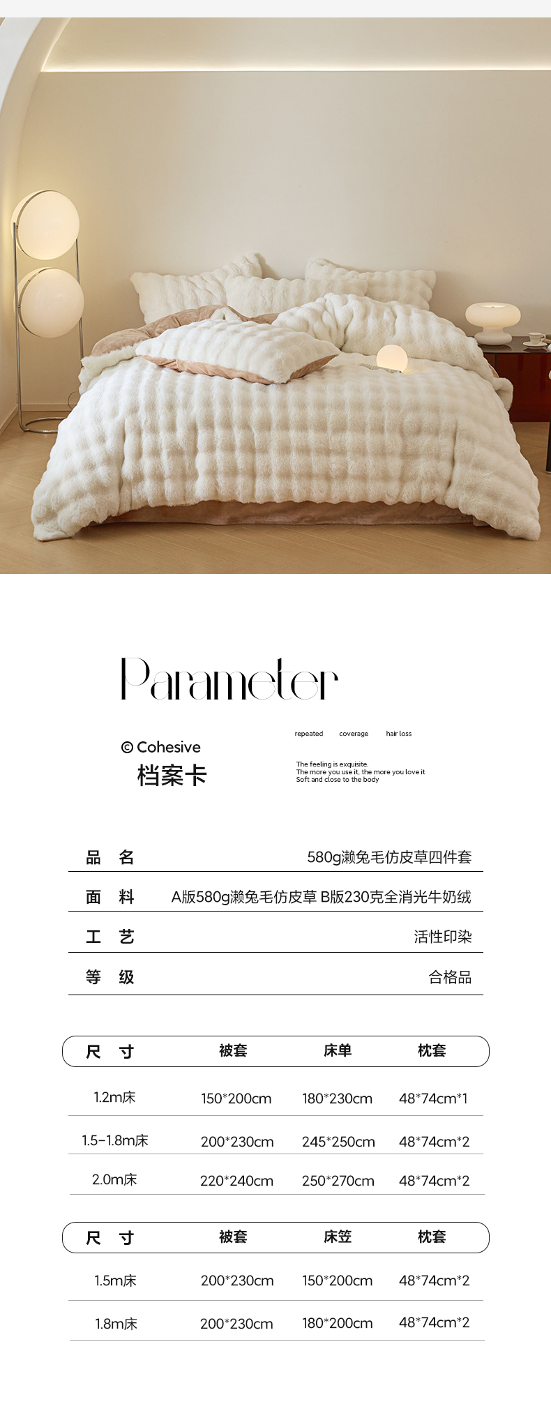 商品名称:铠畅2023款高端A类580克獭兔毛11-12斤皮草双面加厚牛奶绒兔兔绒大泡泡系列四件套 大泡泡奶白咖