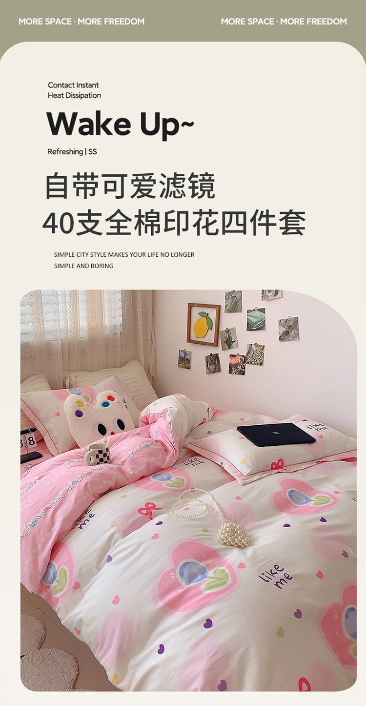 (总)莱豫家纺 2025新款小清新全棉纯棉四件套,爱心豹纹,白薇,春黛,芳华,锦绣咖,锦绣米,可爱狗狗咖,太空超人,甜橘,童年,仙本娜,小飞马,小小花园,星星人黄,星星人蓝,雅蔓