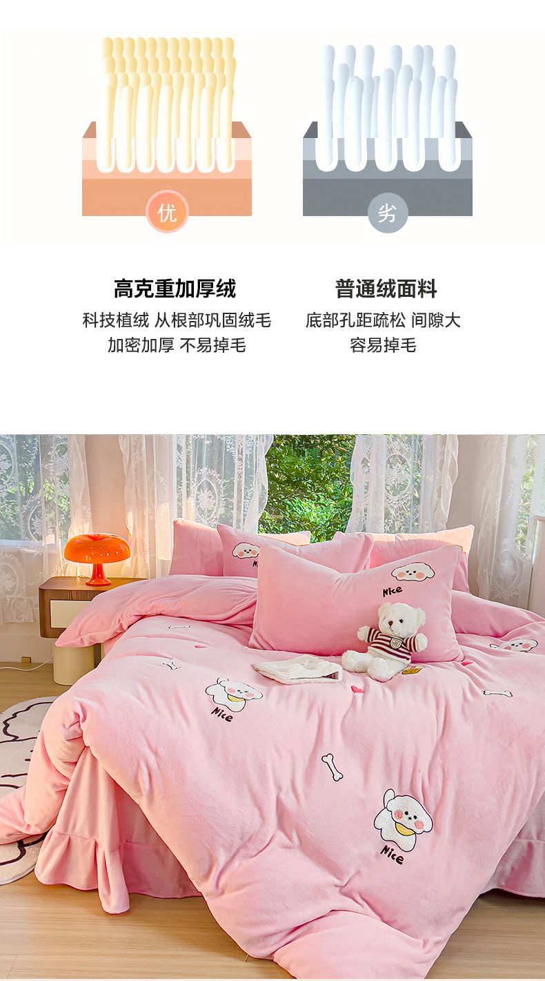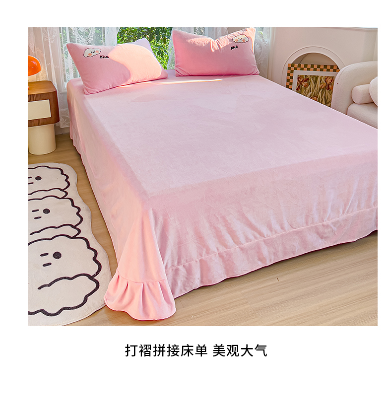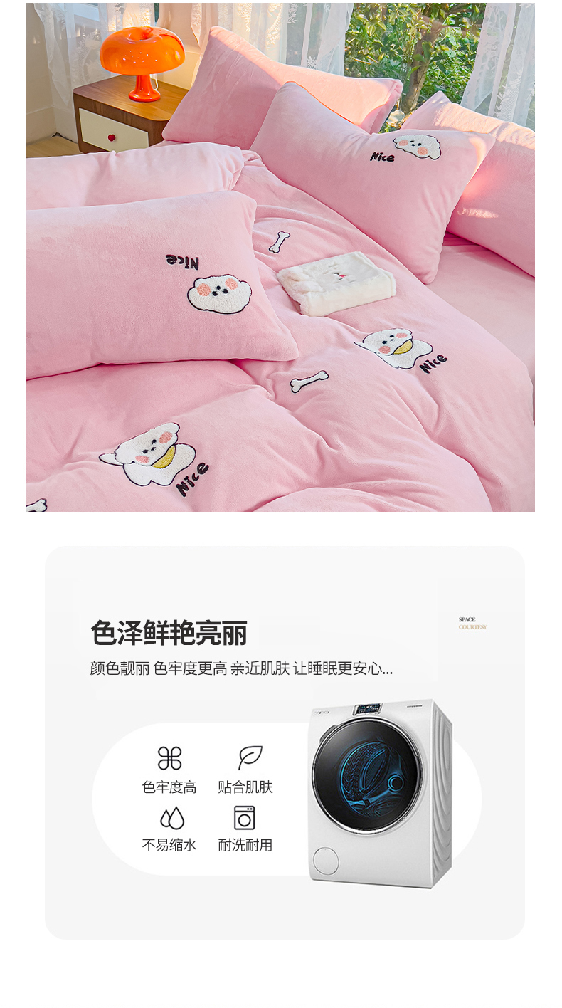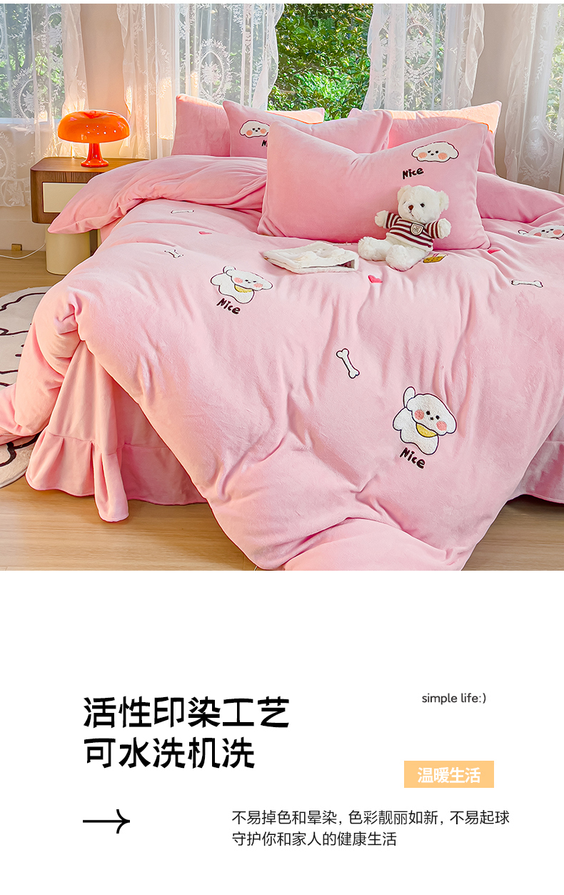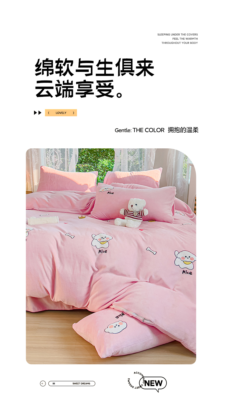 商品名称:米瑞娜 2024新款纯色毛巾绣牛奶绒四件套 皮皮狗-粉