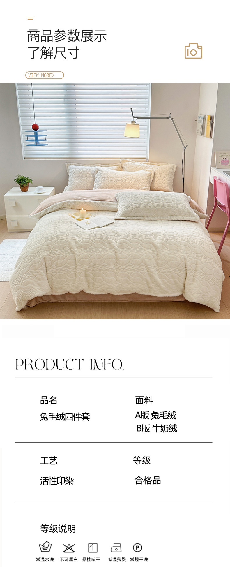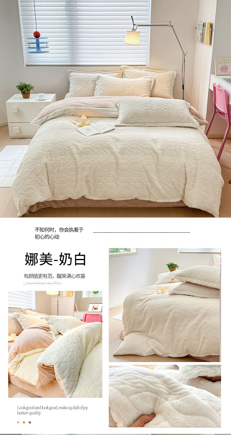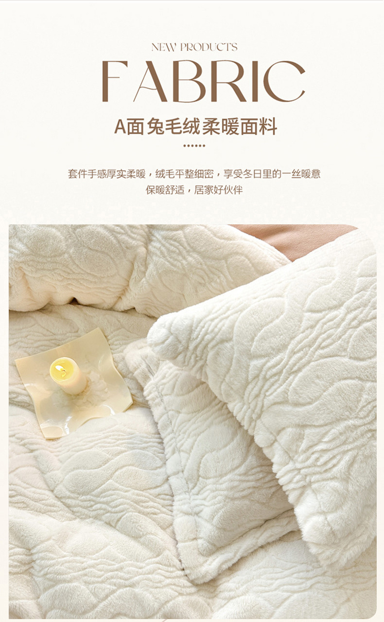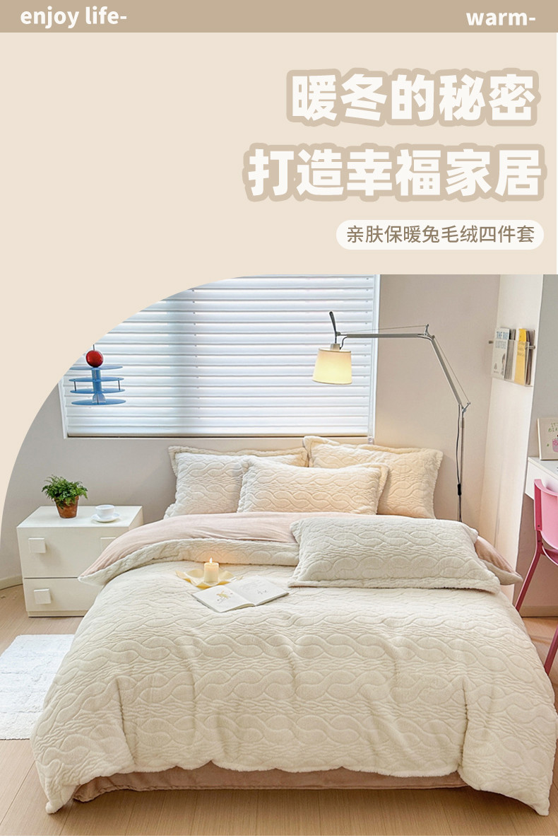 商品名称:N先生 2024秋冬新款320克9斤重兔毛四件套-娜美系列 娜美-奶白