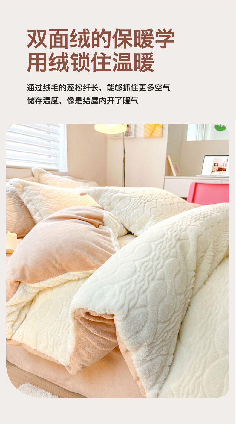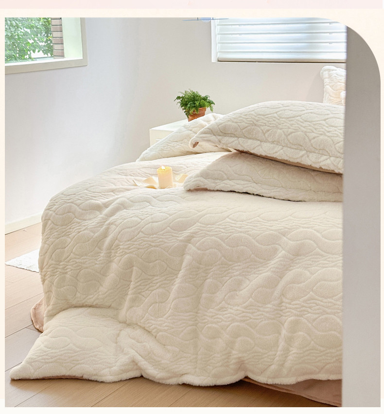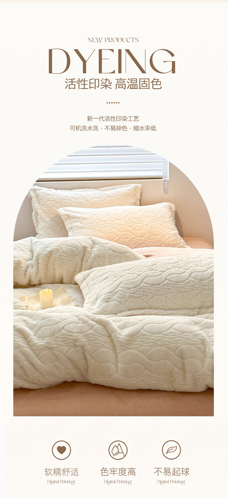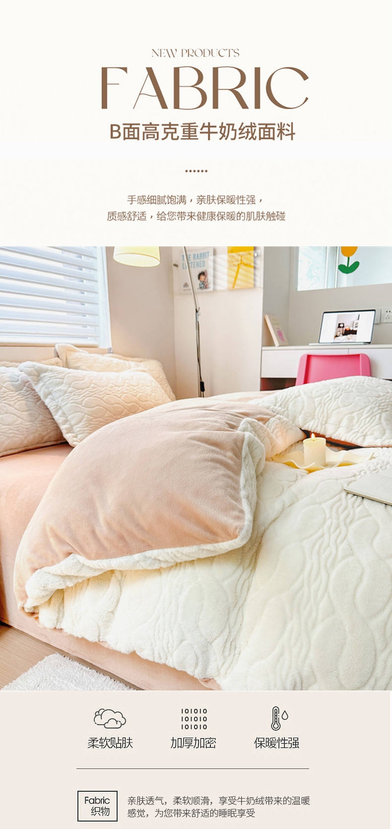 商品名称:N先生 2024秋冬新款320克9斤重兔毛四件套-娜美系列 娜美-奶白