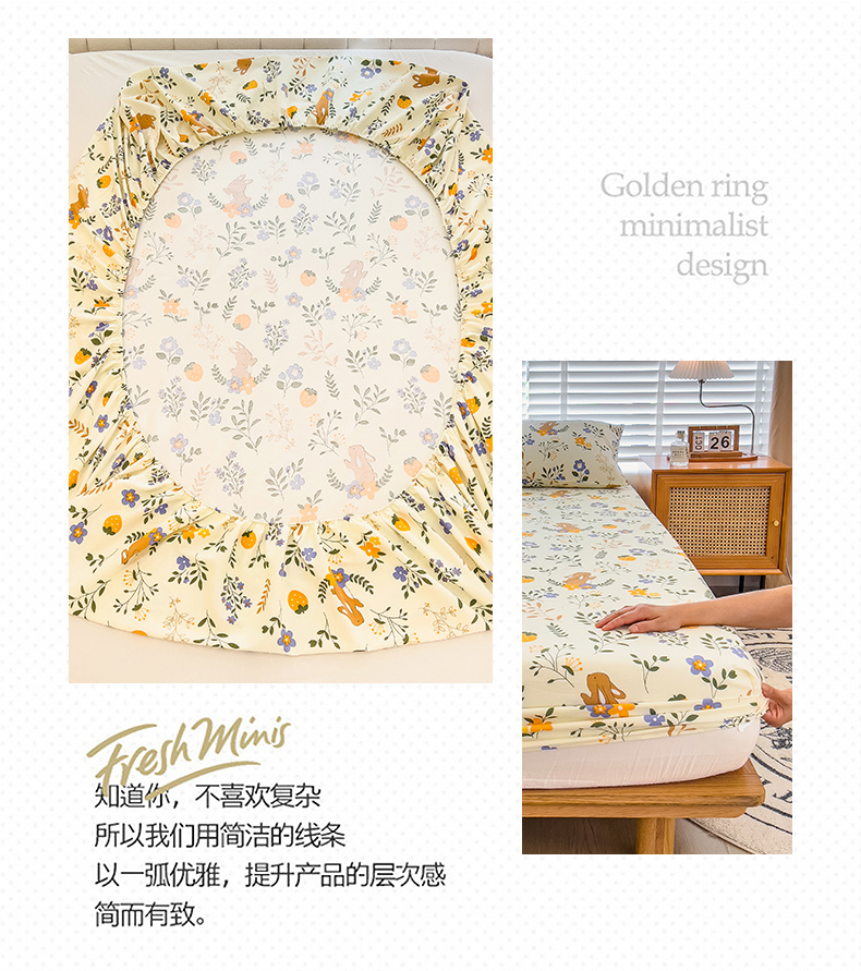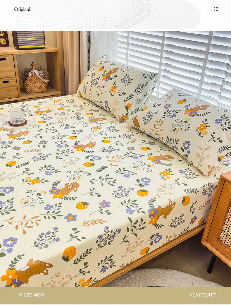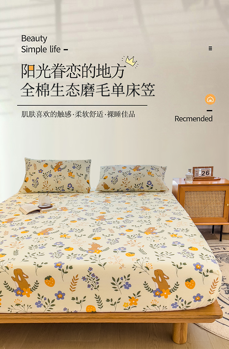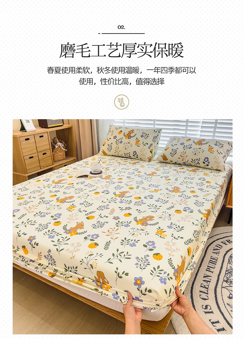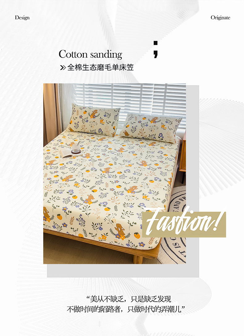 • 91家纺网 家纺一手货源 找家纺 芃成家纺 2023新款磨毛单床笠 田园小兔