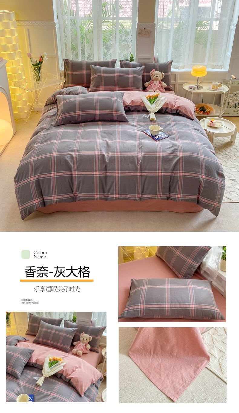 当前位置: 91家纺网 > 商品网购 > 床品套件 > 四件套 > 水洗棉四件套 > 米可 2025新款全棉色织水洗棉四件套香奈-灰大格