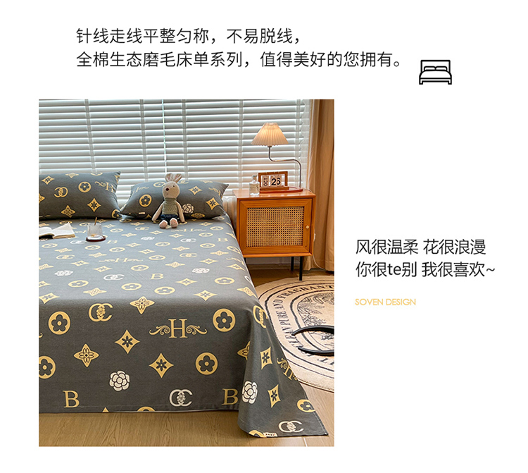 • 91家纺网 家纺一手货源 找家纺 芃成家纺 2023磨毛单床单 复古摩登-灰
