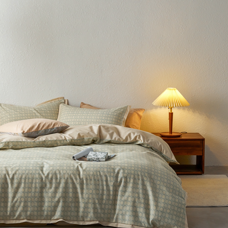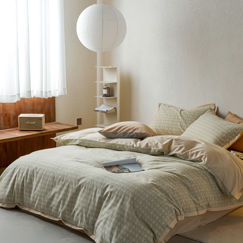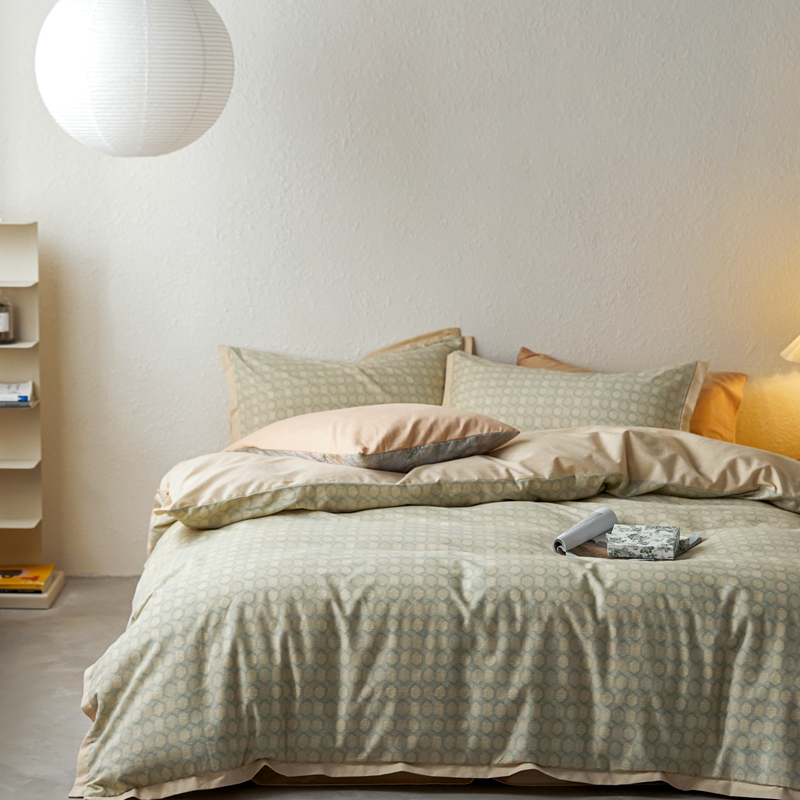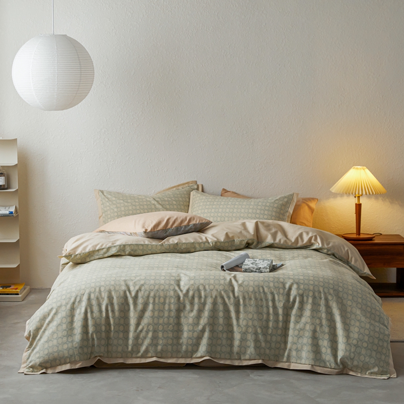 时年 2022新款全棉40支13372ins条纹款四件套 复古奶绿,复古奶绿