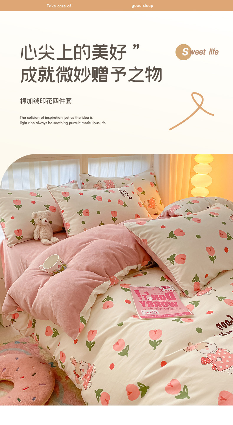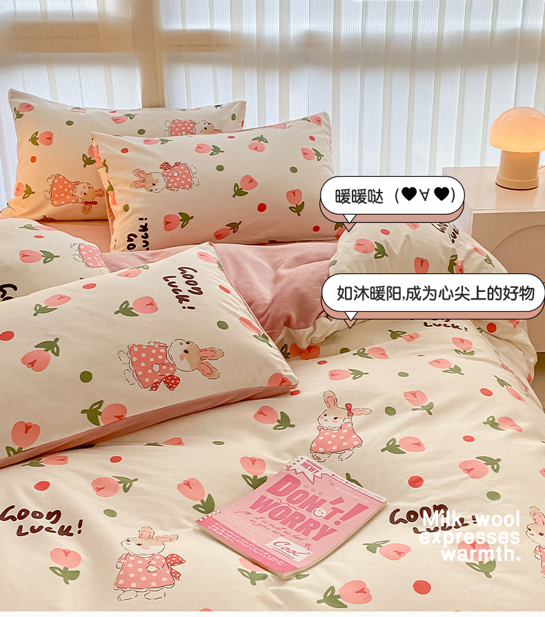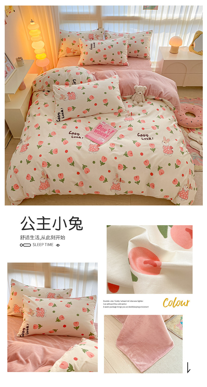 当前位置: 91家纺网 > 商品网购 > 床品套件 > 四件套 > 牛奶绒四件套 > 瑞莱 2023秋冬全新网红款棉加绒四件套 公主小兔