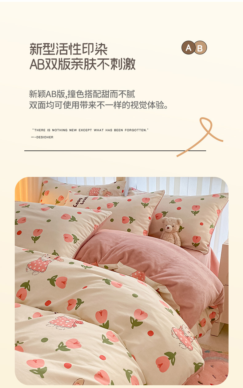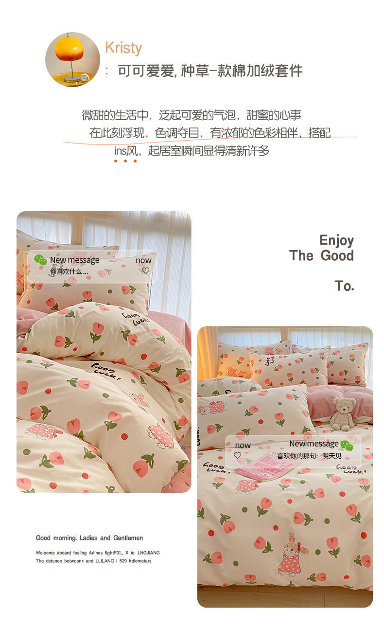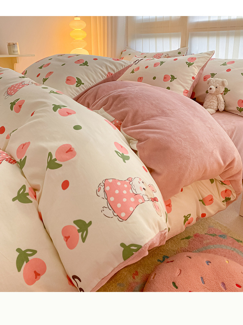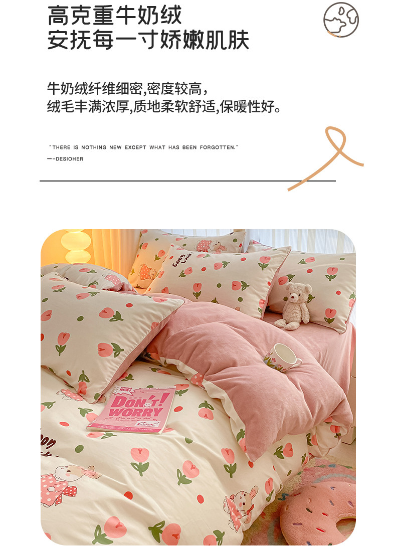 当前位置: 91家纺网 > 商品网购 > 床品套件 > 四件套 > 牛奶绒四件套 > 瑞莱 2023秋冬全新网红款棉加绒四件套 公主小兔