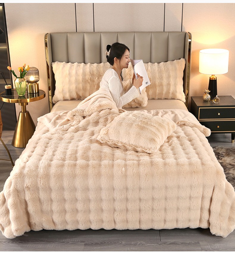 新月 2023新款A版托斯卡纳兔毛B版安哥拉兔毛多功能毛毯 卡其