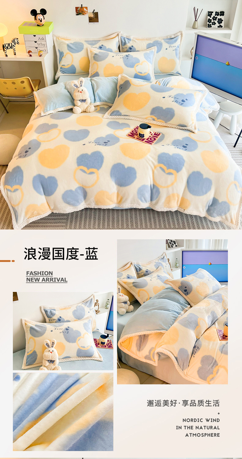 商品名称:川悦生活 2023新款牛奶绒200克宽边四件套 宽边浪漫国度-蓝