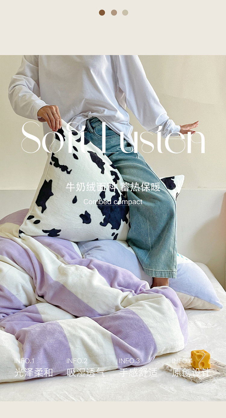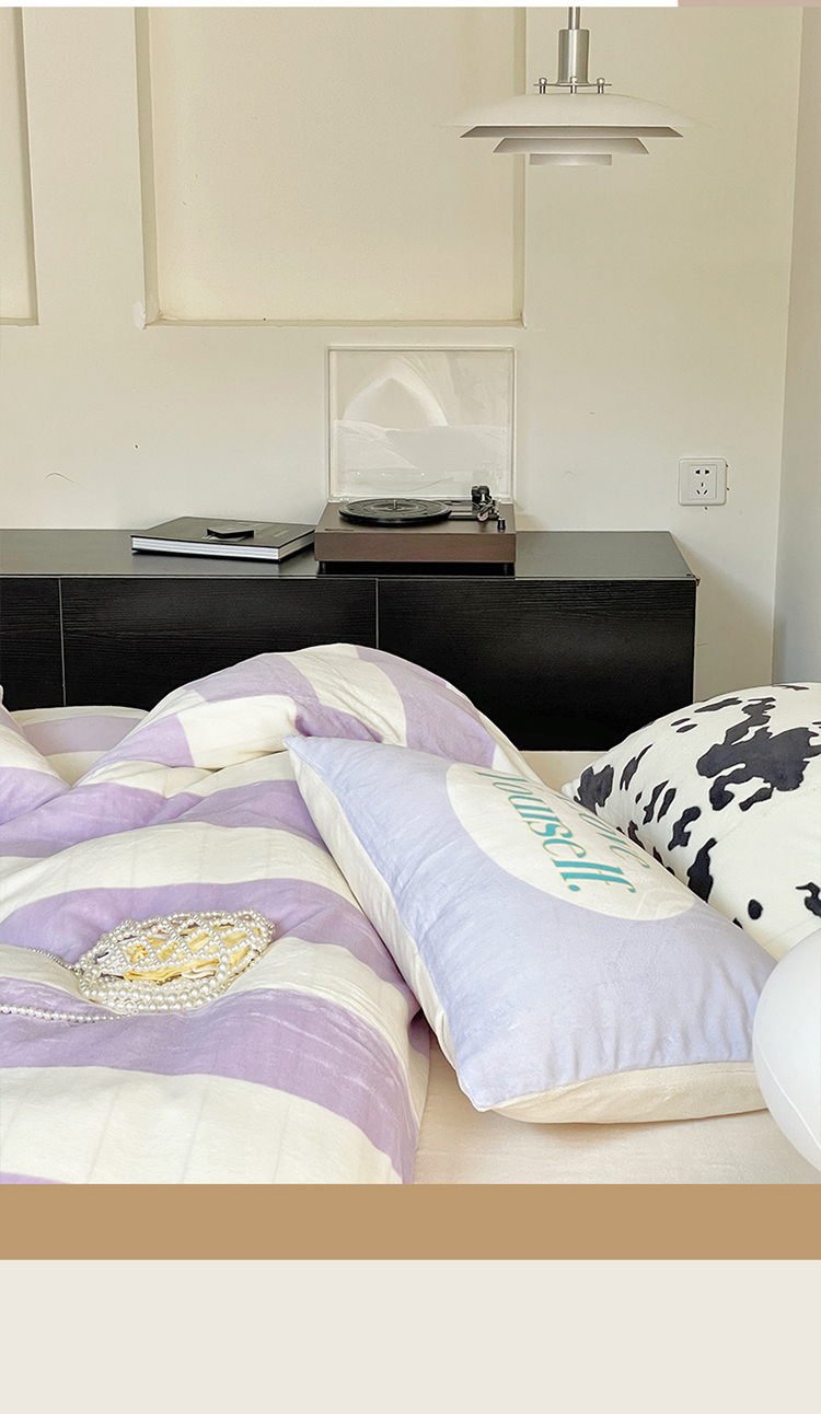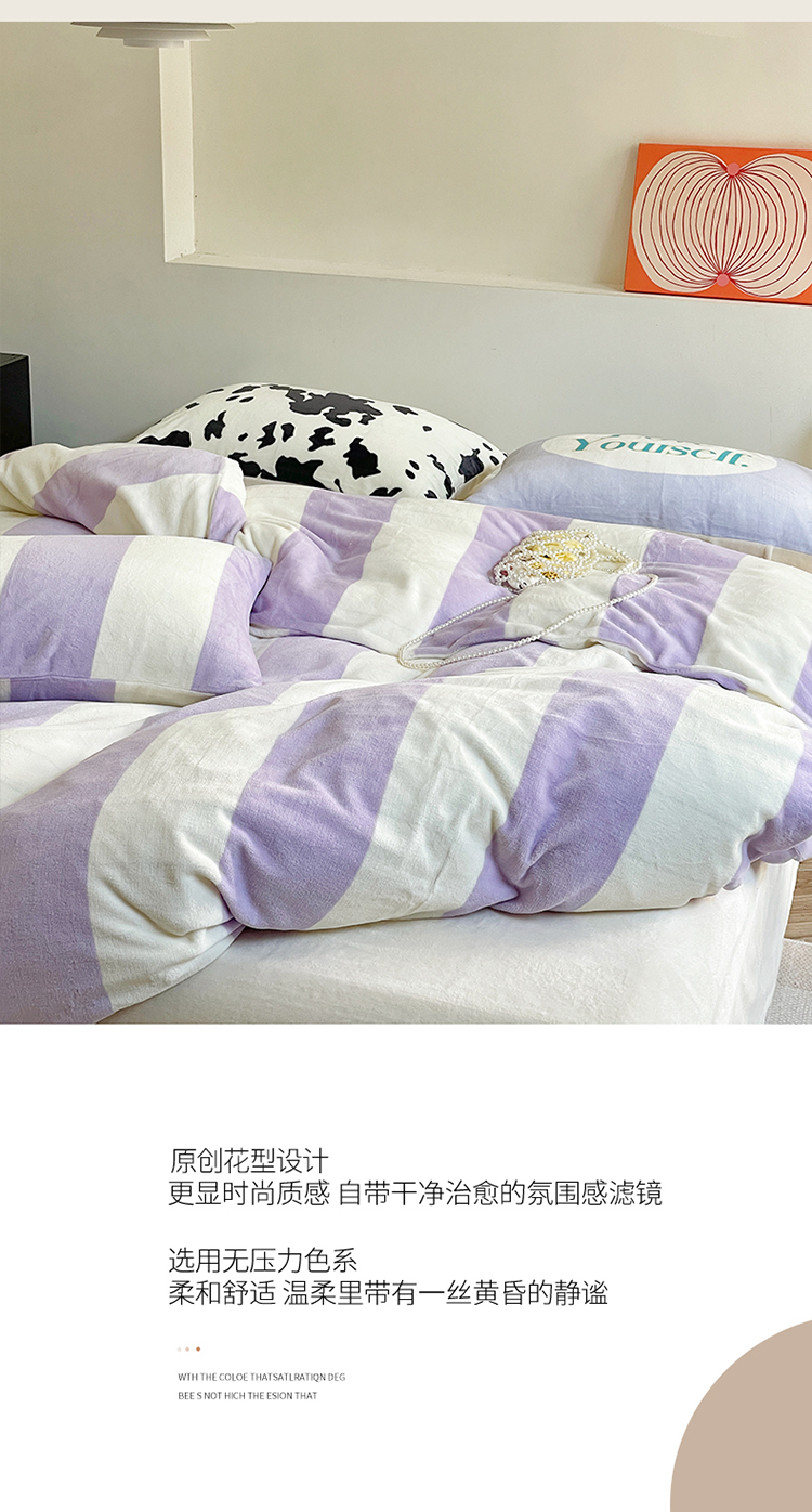 圆岛家纺 2023新款原创牛奶绒印花保暖四件套 奶油紫