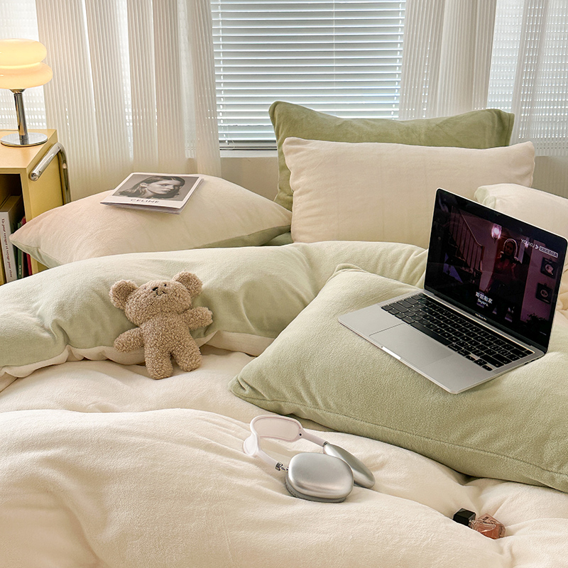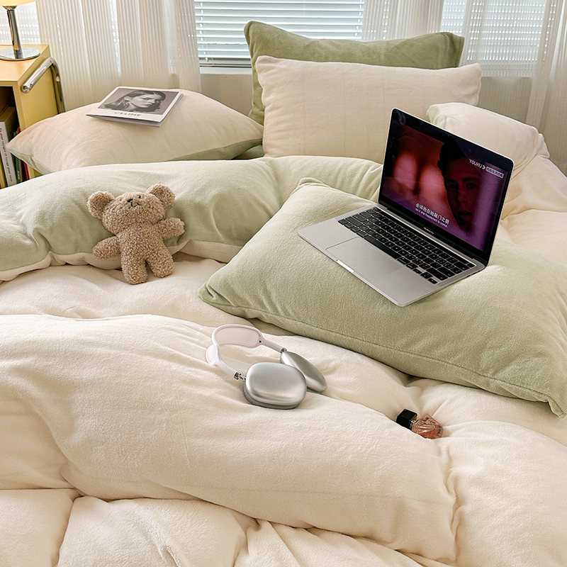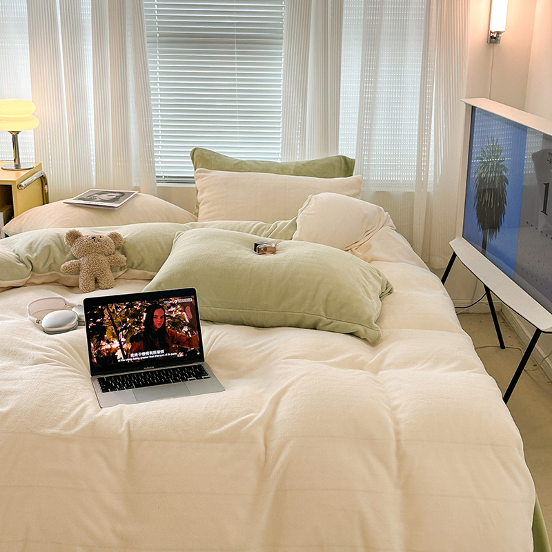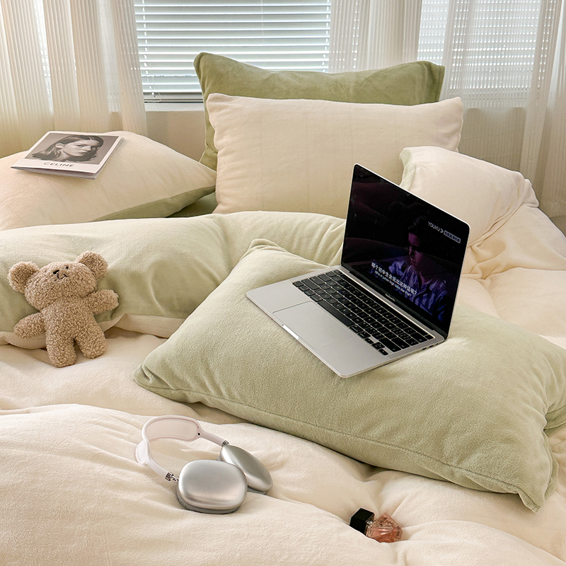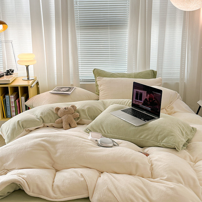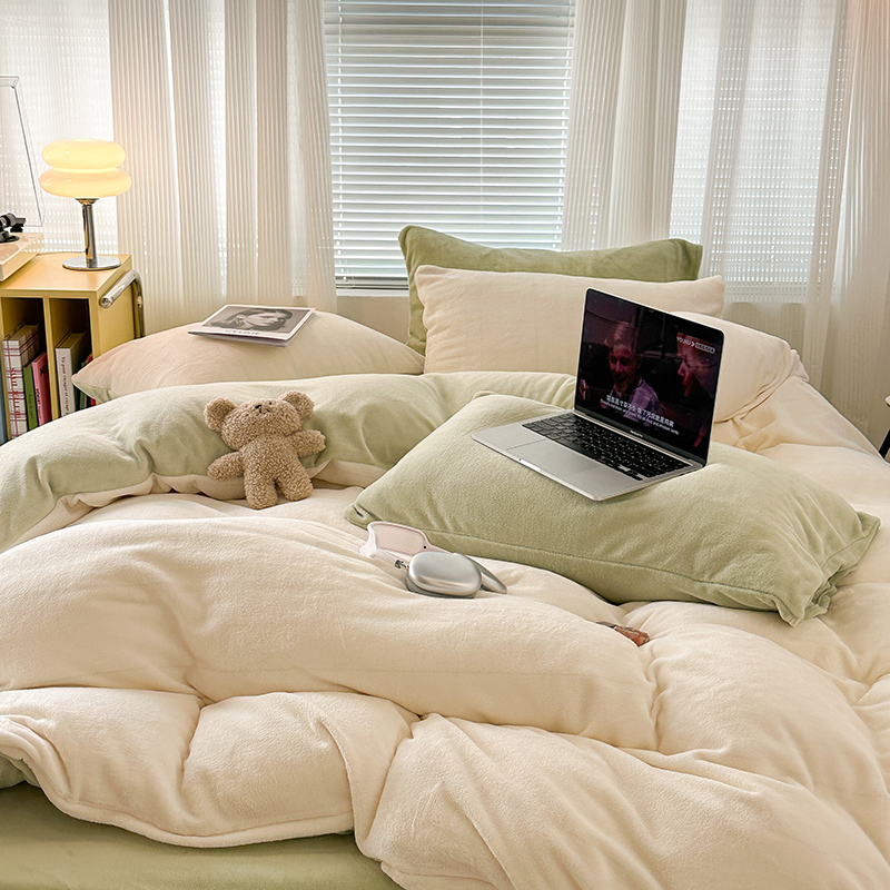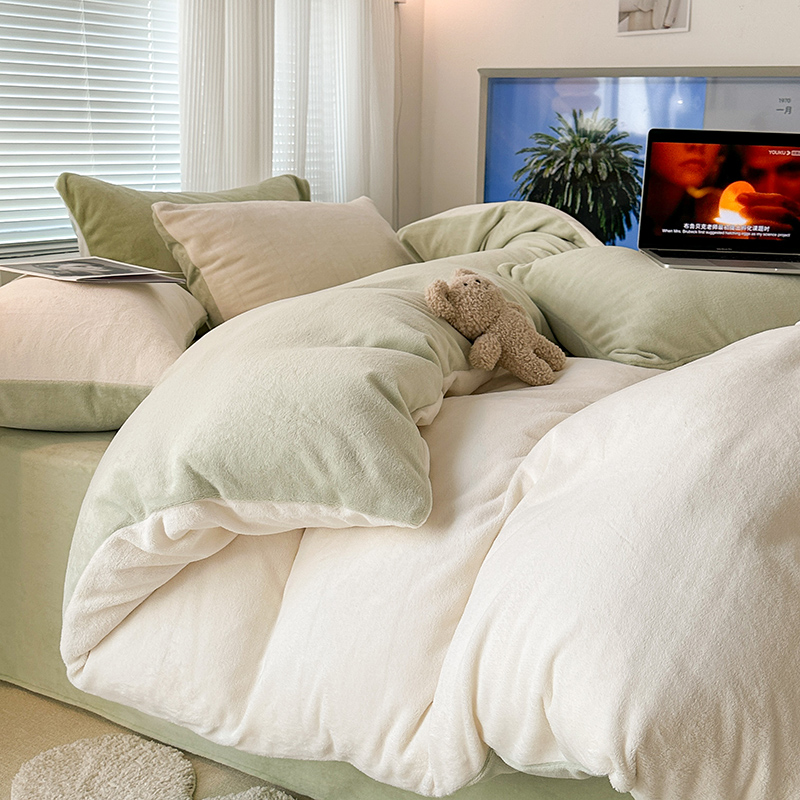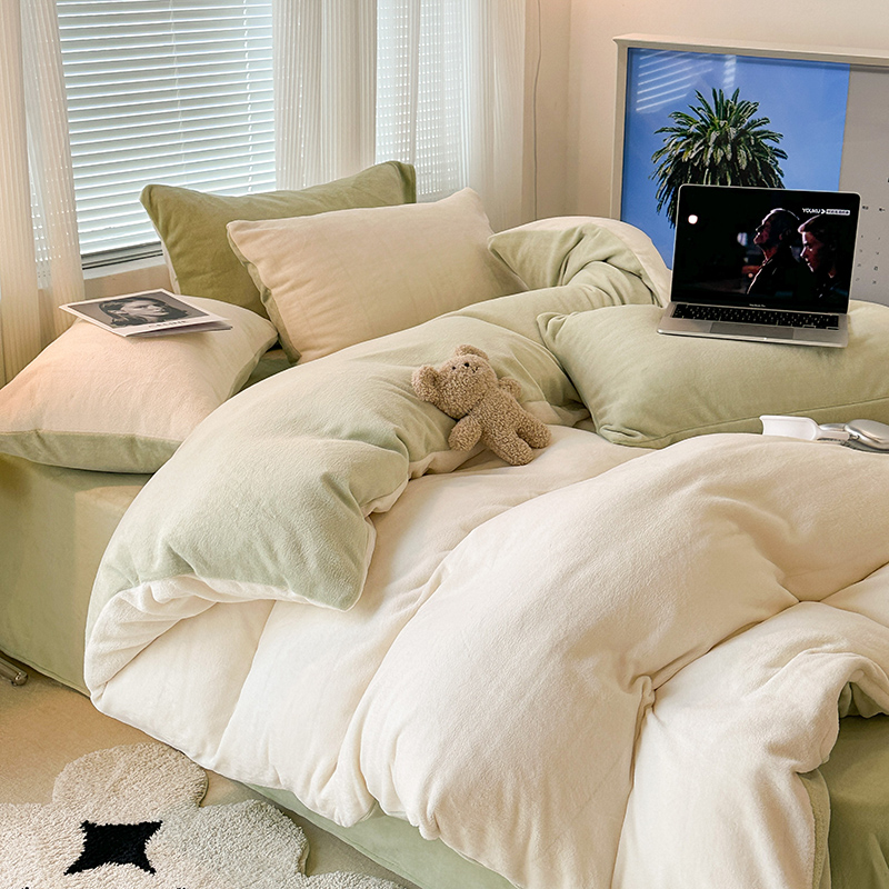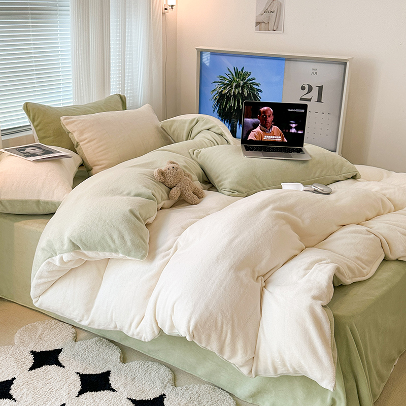 昔可家纺 2023新款奶油纯色系列双拼牛奶绒四件套 茉莉奶绿