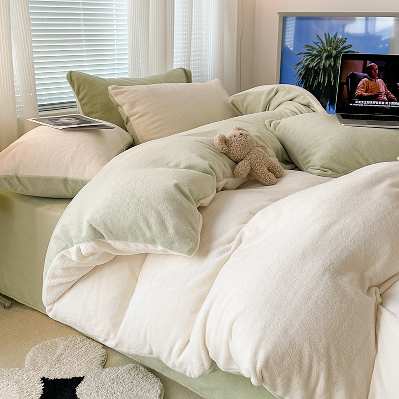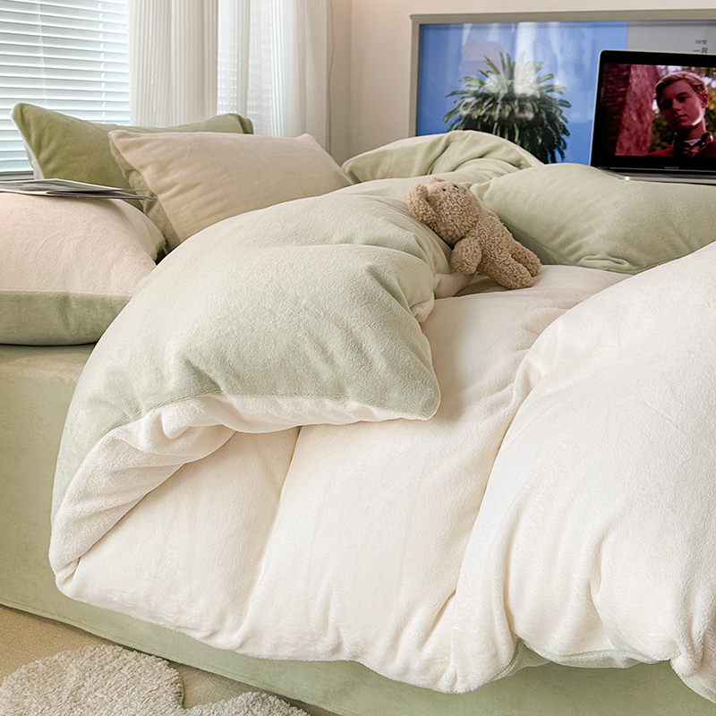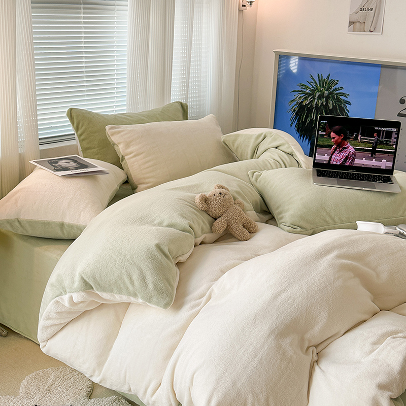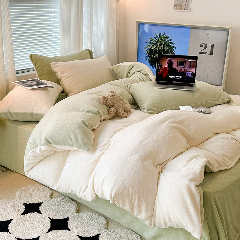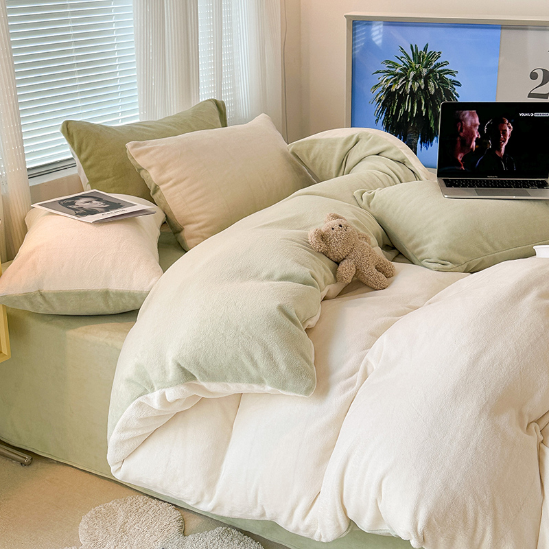 商品名称:昔可家纺 2023新款奶油纯色系列双拼牛奶绒四件套 茉莉奶绿
