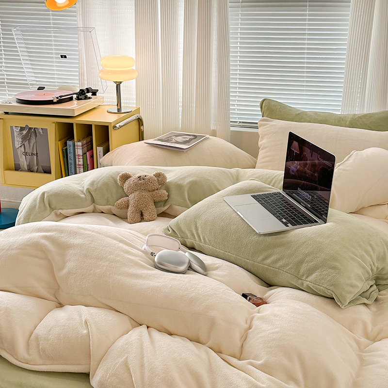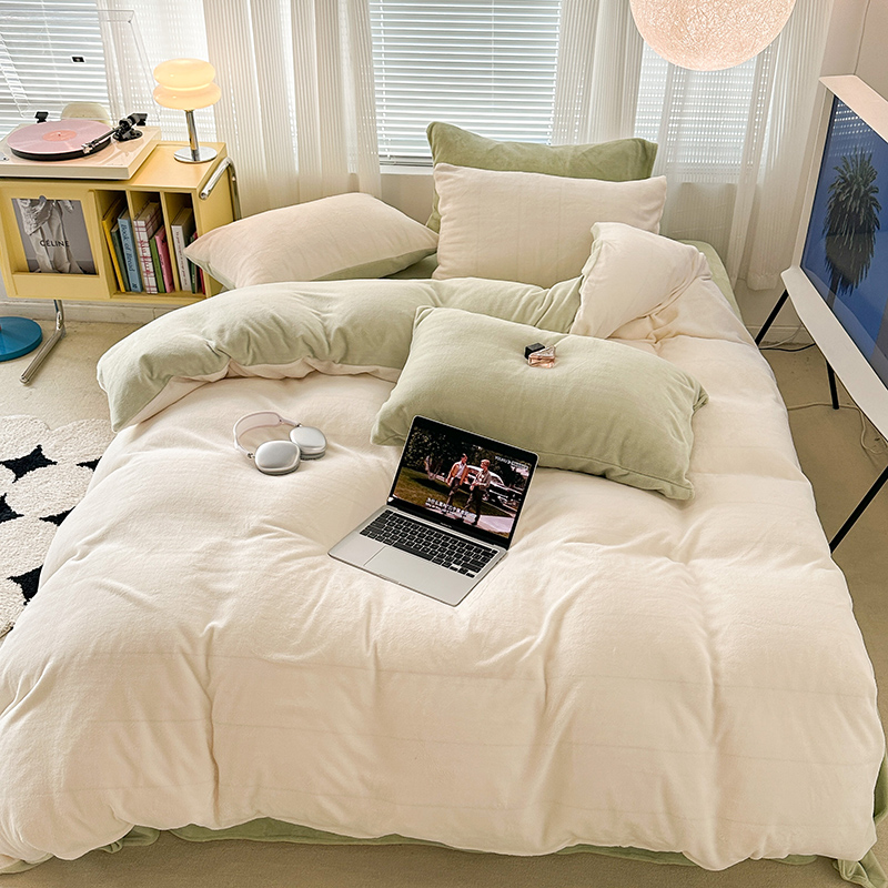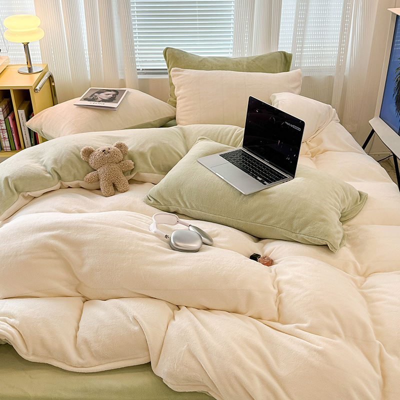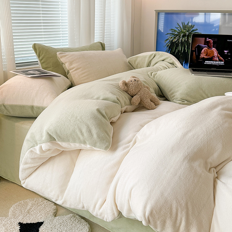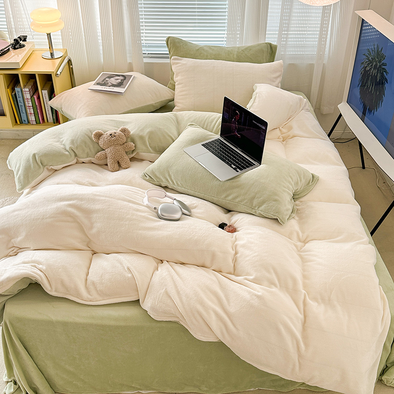 商品名称:昔可家纺 2023新款奶油纯色系列双拼牛奶绒四件套 茉莉奶绿