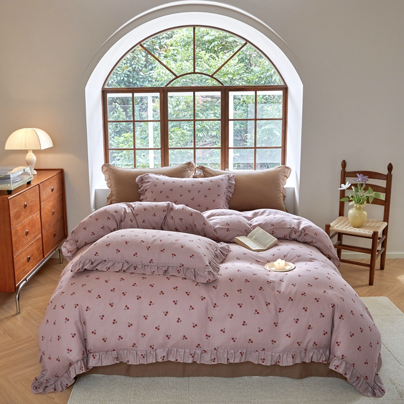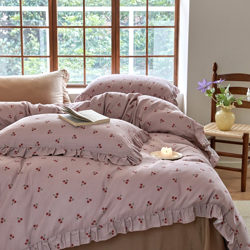 本希 2023新款秋冬全棉a类双层纱四件套-法式 樱桃