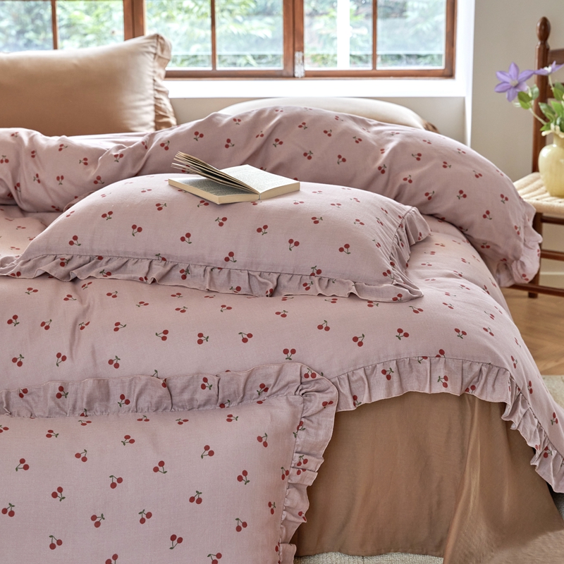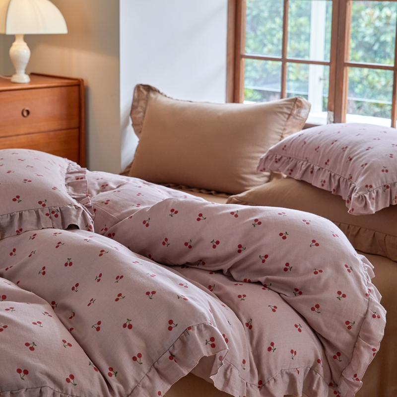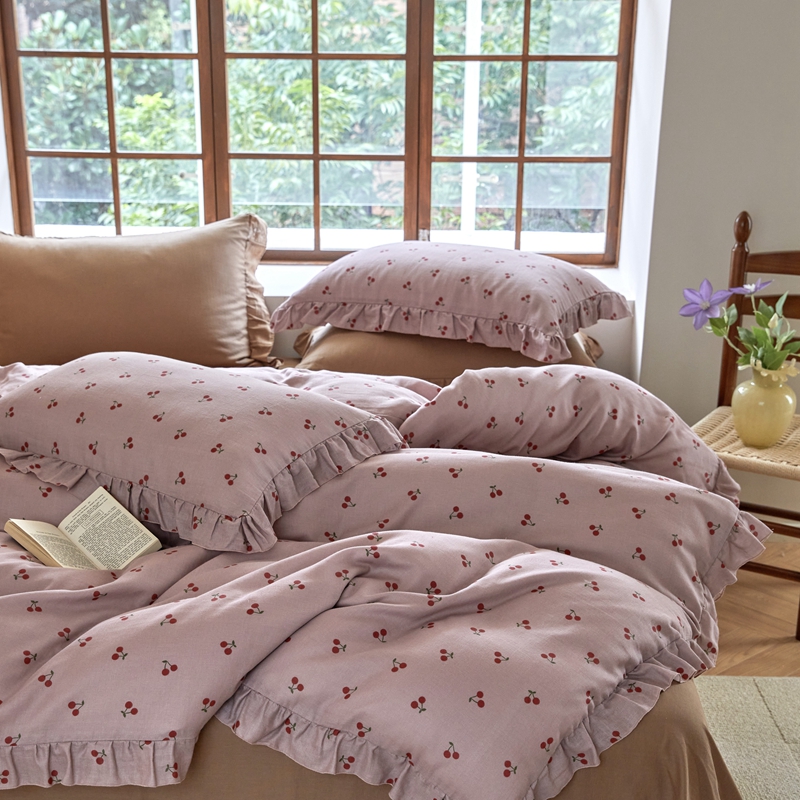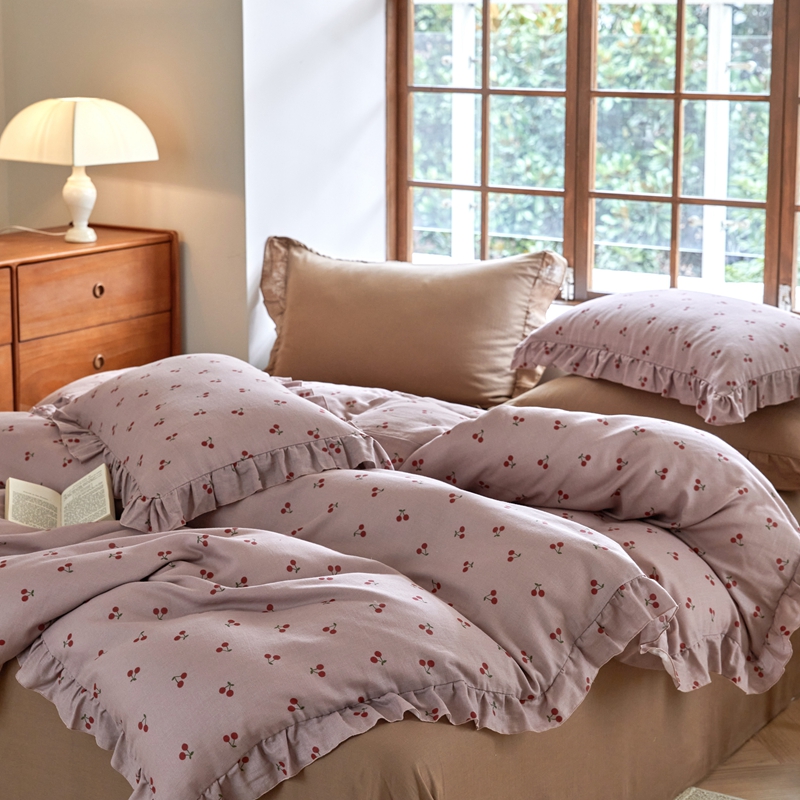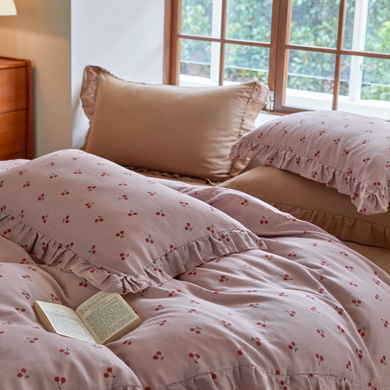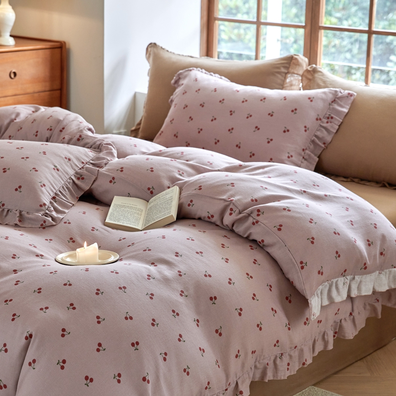 商品名称:本希 2023新款秋冬全棉a类双层纱四件套-法式 樱桃